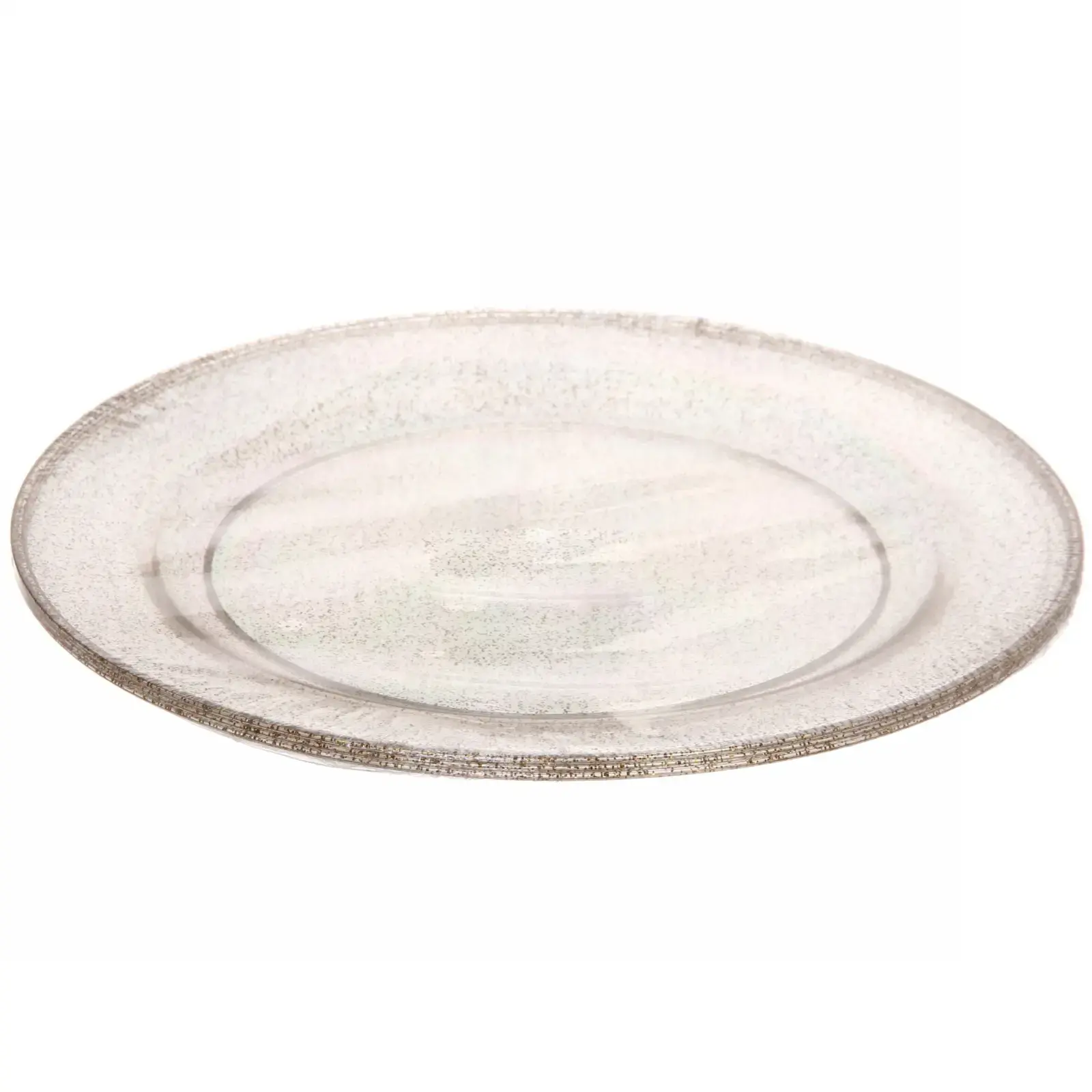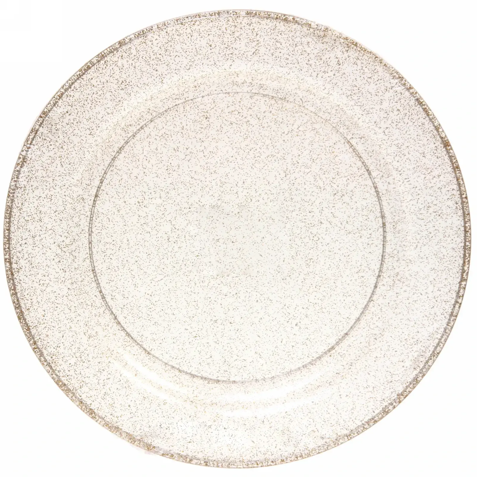 Тарелка одноразовая 23 см с золотым ободком и блестками, набор из 3 шт, пластик
