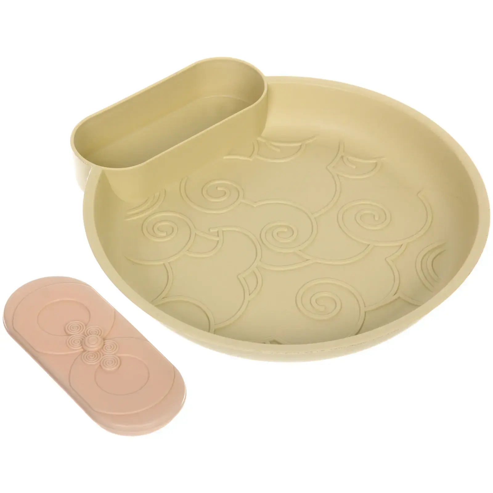 Эта тарелка станет незаменимым помощником на вашей кухне. Она выполнена из качественного пластика, что обеспечивает легкость и долговечность. Оливковый цвет придаст вашему столу стильный и современный вид, а удобные размеры 22х23,5х3,5 см позволят подавать как закуски, так и основные блюда.