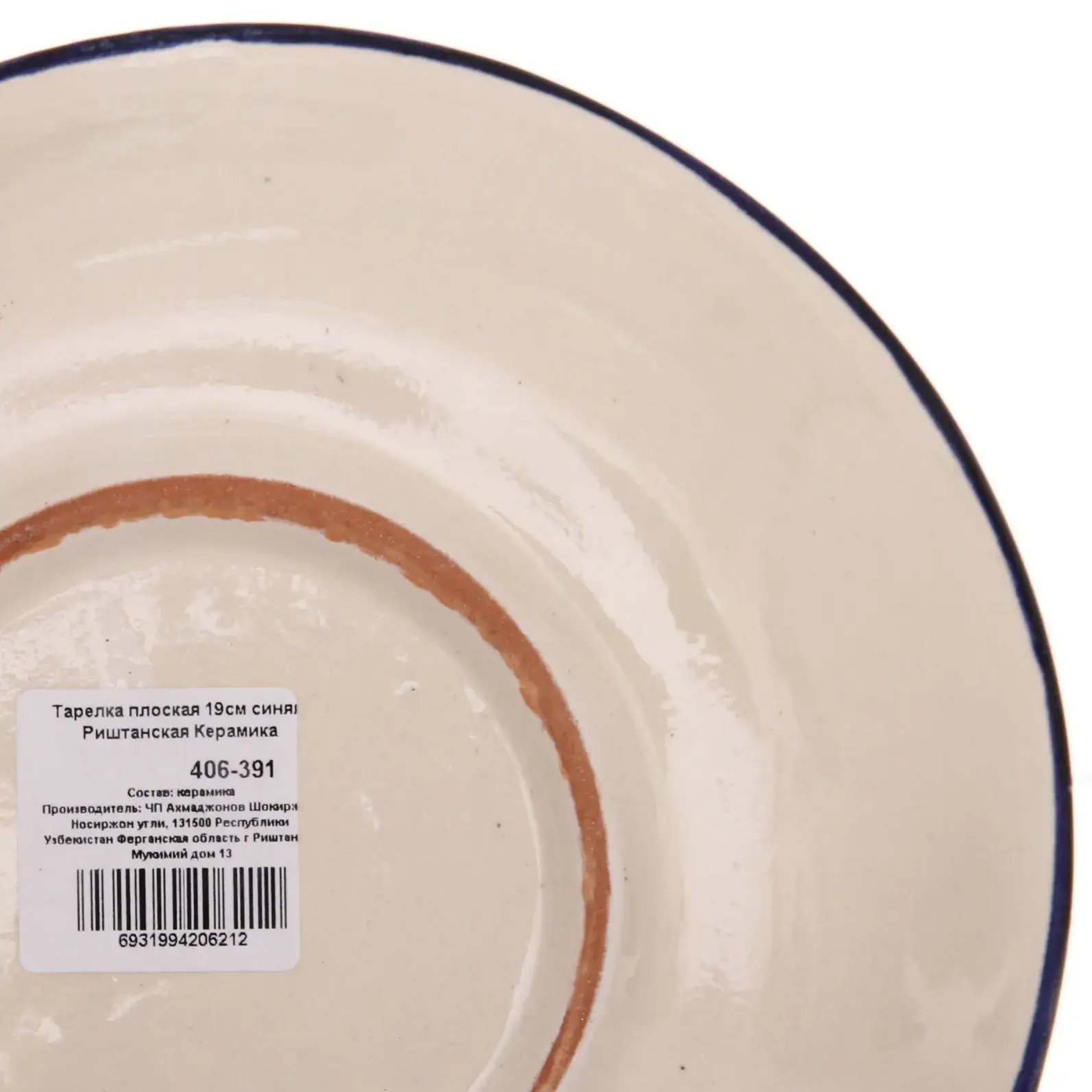 Тарелка керамическая декоративная 19 см, синяя с ручной росписью, серия «Риштанская Керамика»
