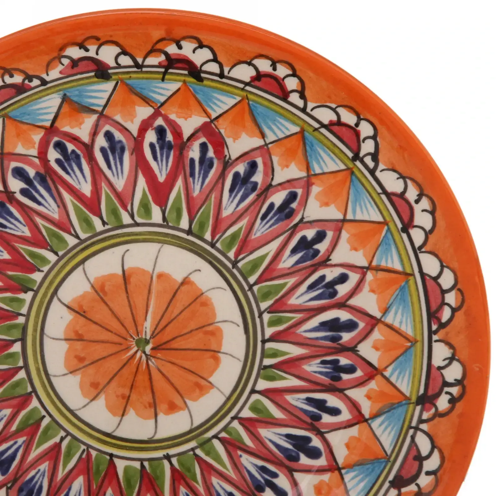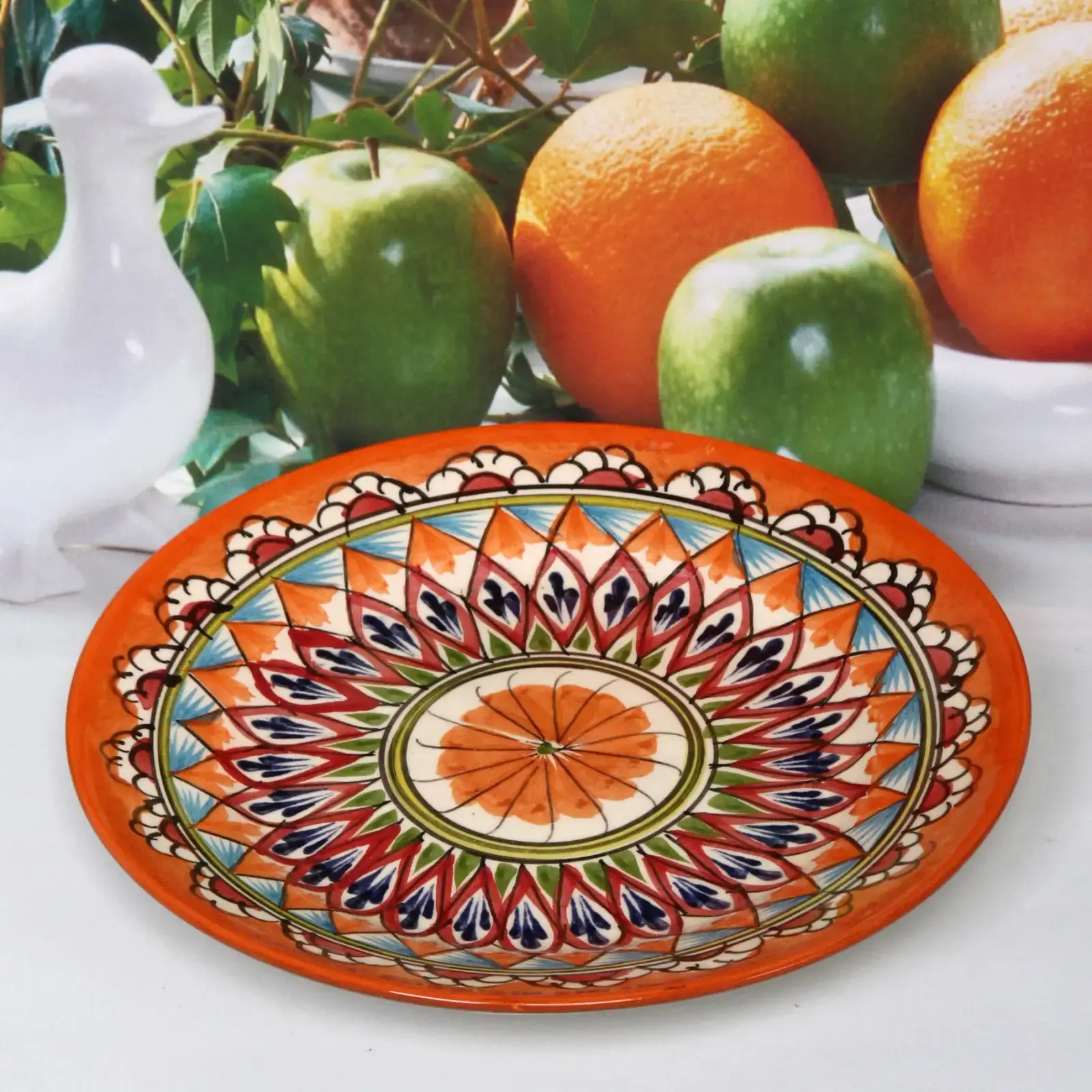 Выбирая эту тарелку, вы получаете не только красивый, но и практичный предмет. Керамика, из которой она изготовлена, устойчива к повреждениям и легко очищается. Яркий оранжевый цвет и декоративные узоры придают тарелке уникальность и стиль, что делает её отличным подарком для друзей и близких.