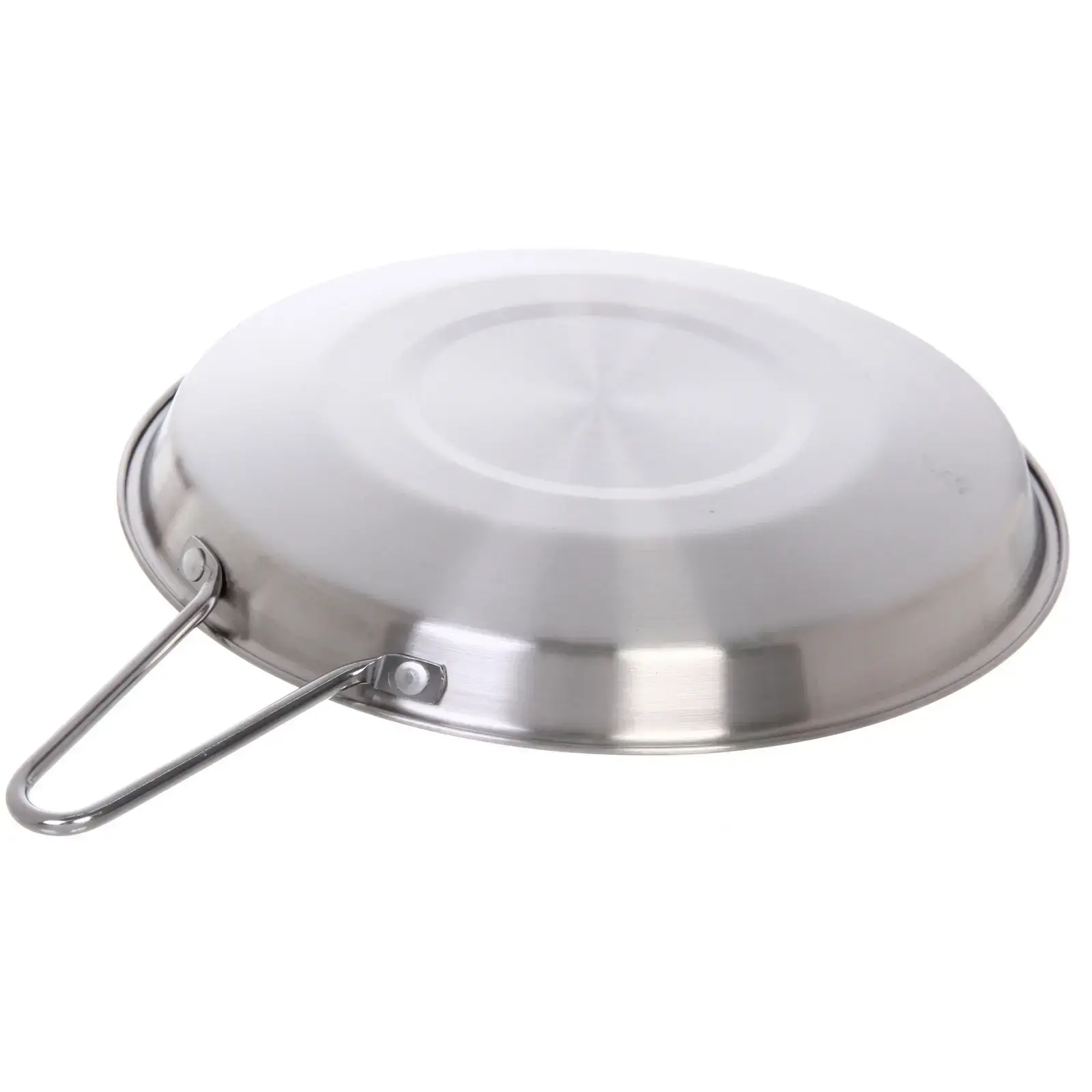 Тарелка выполнена из нержавеющей стали, что гарантирует её прочность и долговечность. Гладкая поверхность легко очищается, а стильный серебристый цвет придаёт ей современный вид. Не упустите возможность сделать ваш отдых более комфортным с помощью этой практичной и стильной тарелки!