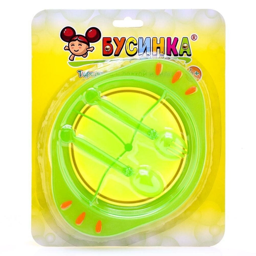 Тарелка детская 'Бусинка' овальная с приборами, пластик, ярко-зеленая