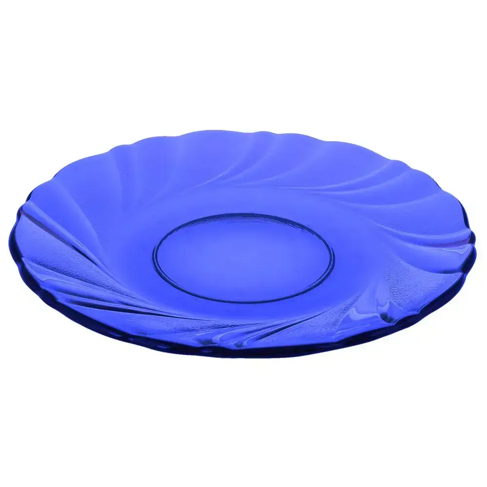 Тарелка стеклянная 21см плоская синяя "SEA BRIM SAPHIR", рифлёный край, для сервировки