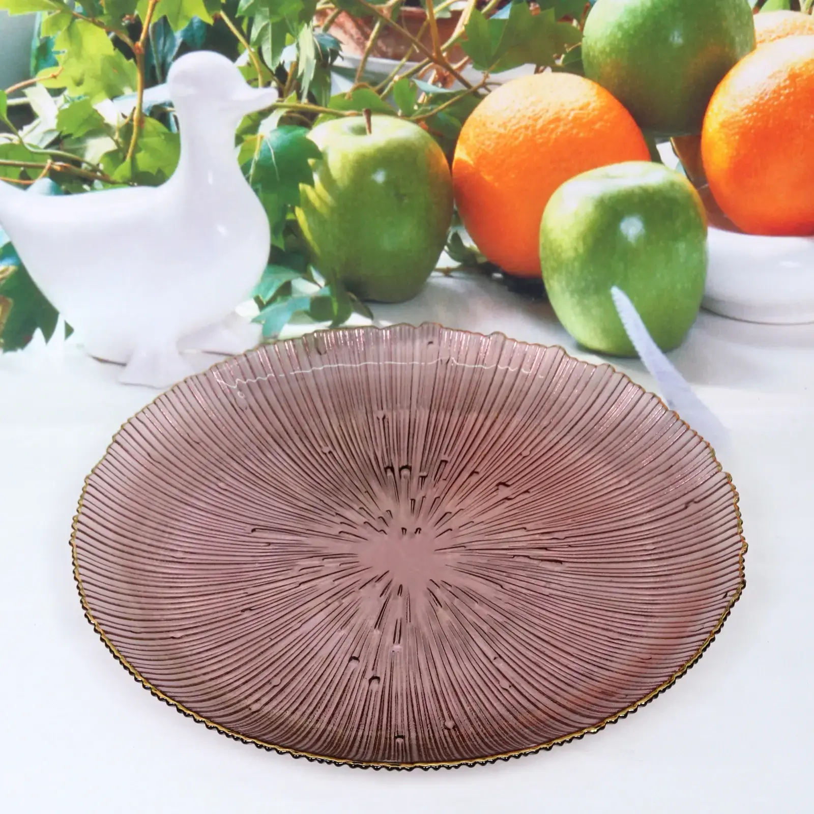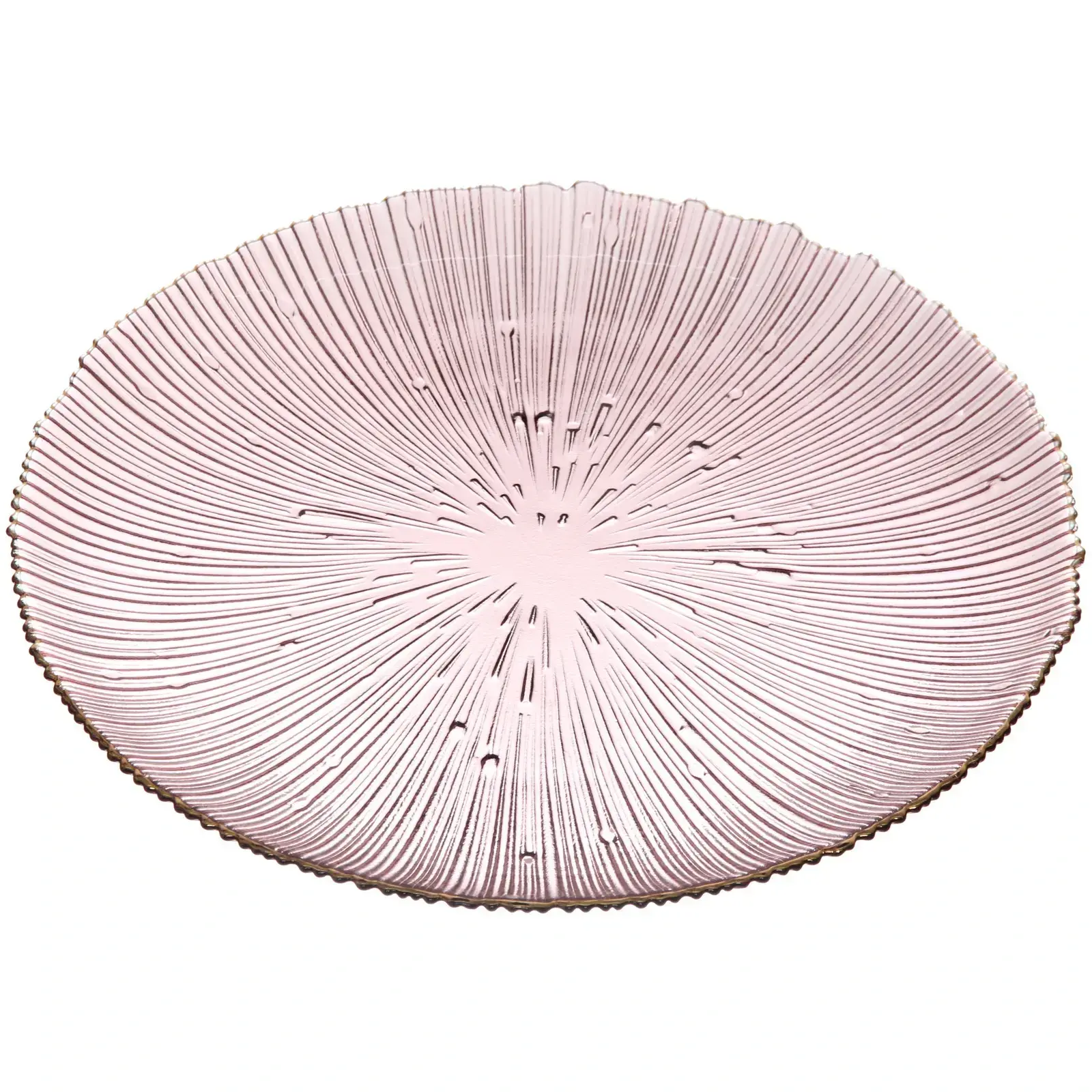 Тарелка стеклянная 27см «Флоренция» в пыльной розе — это идеальное сочетание стиля и функциональности для вашего стола. Она не только украсит любое блюдо, но и станет настоящим акцентом на праздничном столе. Благодаря своему рельефному дизайну и золотистой окантовке, эта тарелка добавит изысканности в любое застолье.