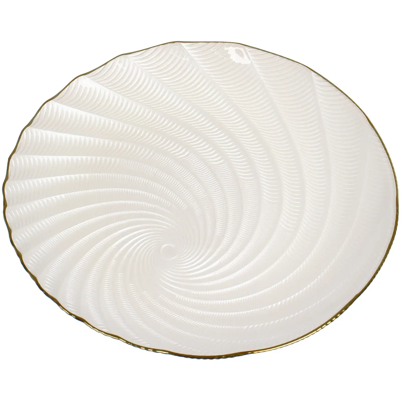 Тарелка стеклянная «Фьюжн» 27см, перламутровая с золотистой окантовкой, для праздничной сервировки