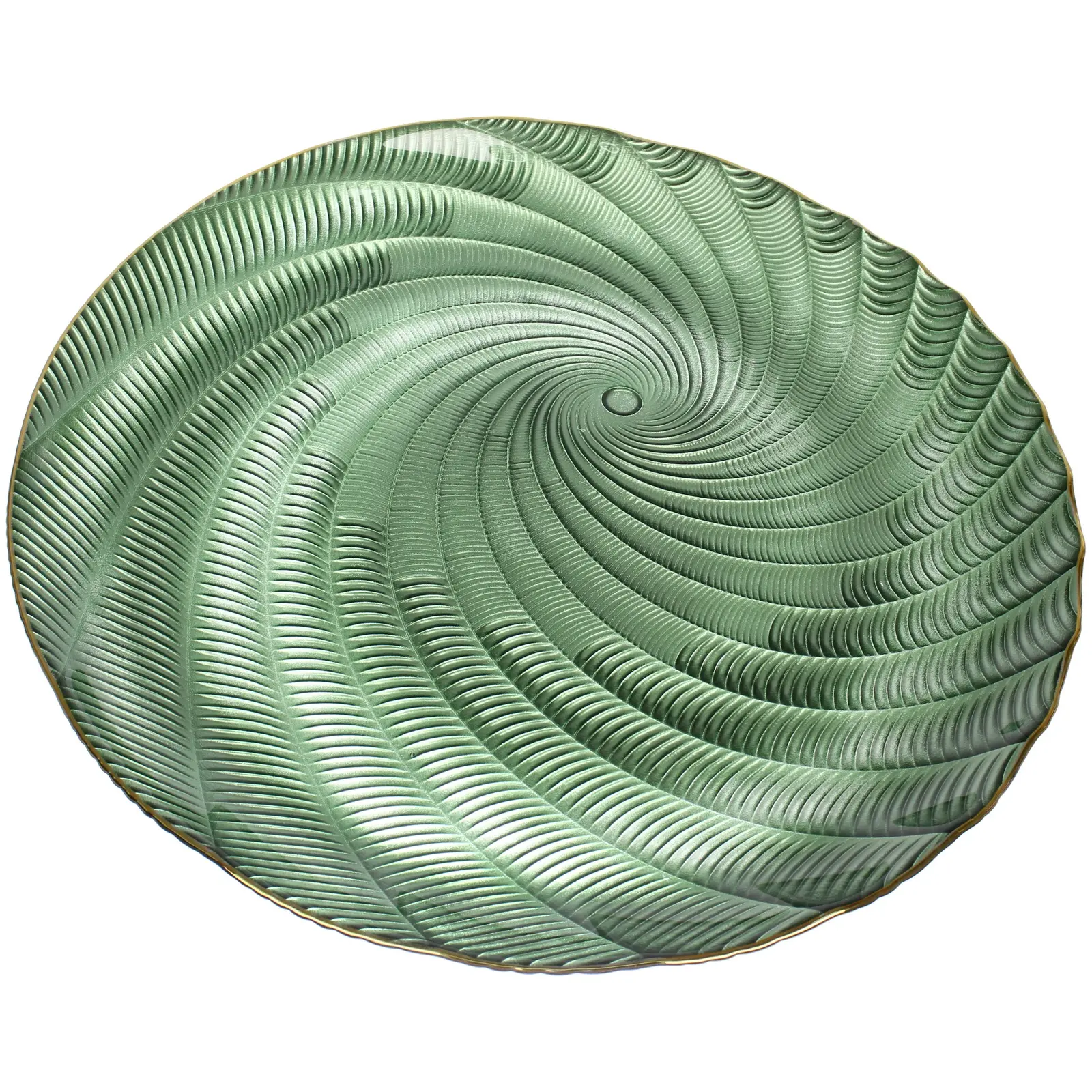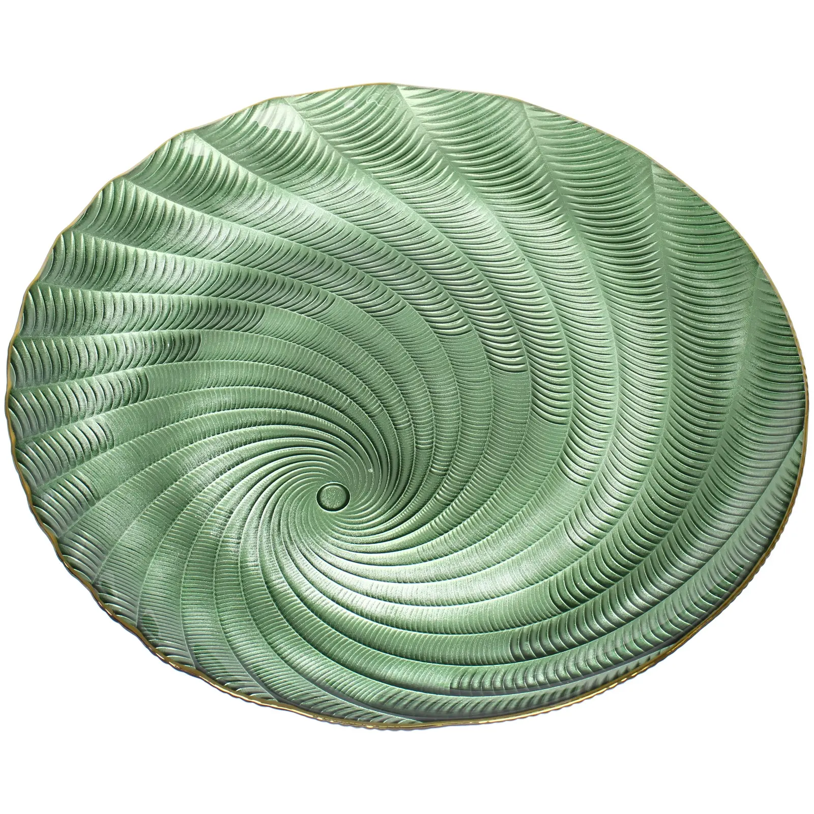 Тарелка стеклянная «Фьюжн» 32см, изумрудный перламутр, для праздничной сервировки