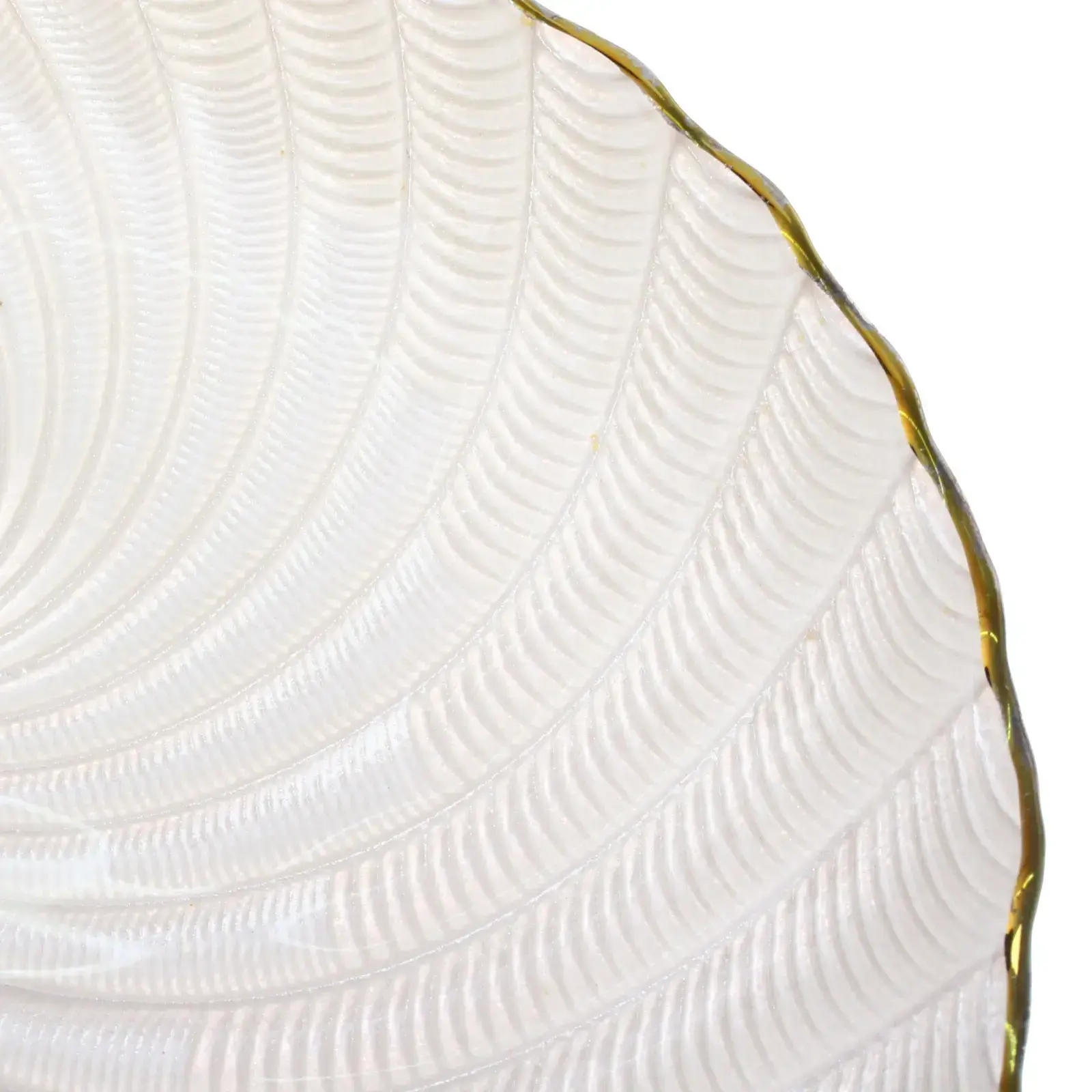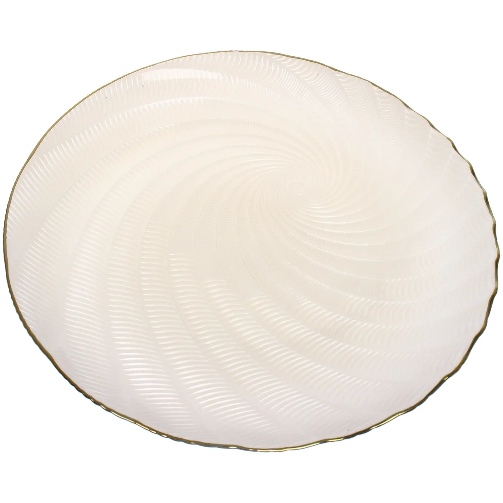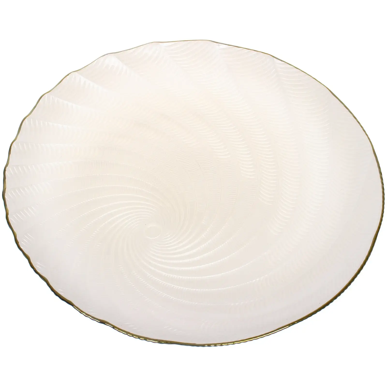 Тарелка стеклянная «Фьюжн» 32см, золотой ободок, спиральный узор, перламутровое покрытие