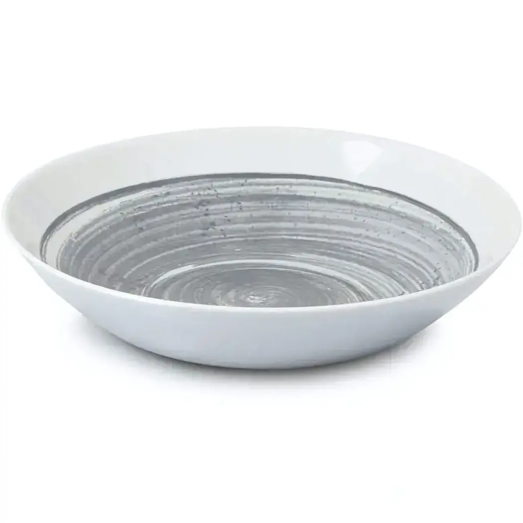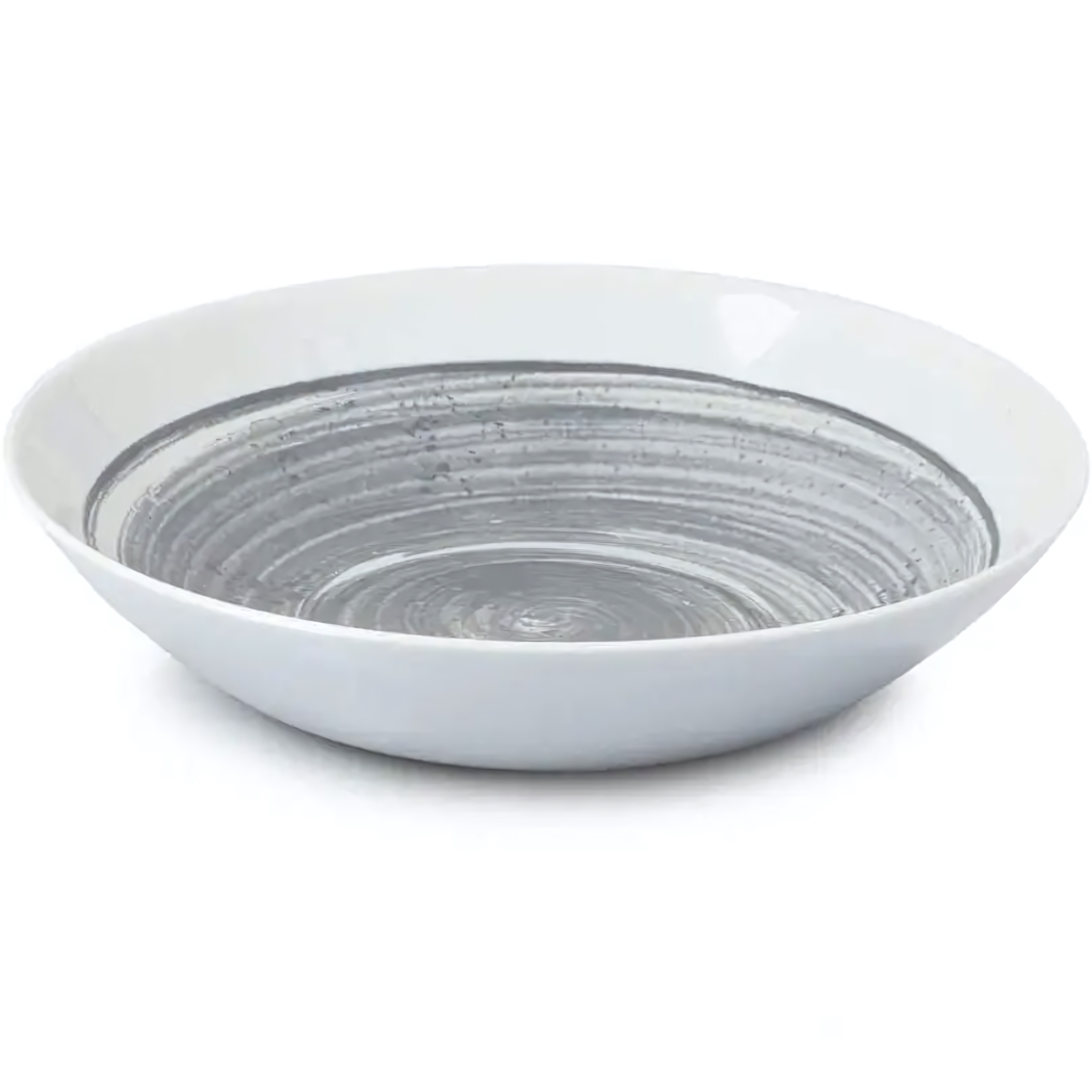 Эта суповая тарелка диаметром 20 см станет незаменимым элементом вашей кухонной посуды. Она не только привнесет стиль и элегантность в ваш обеденный стол, но и обеспечит комфорт при использовании. Белый цвет с серыми радиальными полосами на внутренней поверхности добавляет изысканности, а глубокая форма позволяет удобно подавать супы и другие блюда.