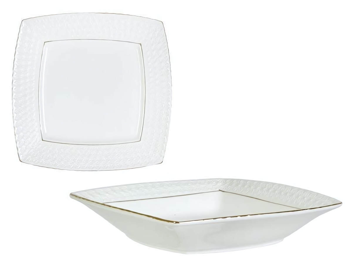 Тарелка суповая 610мл, 19см, квадратная, фарфор, 'Снежная королева', с золотистой окантовкой