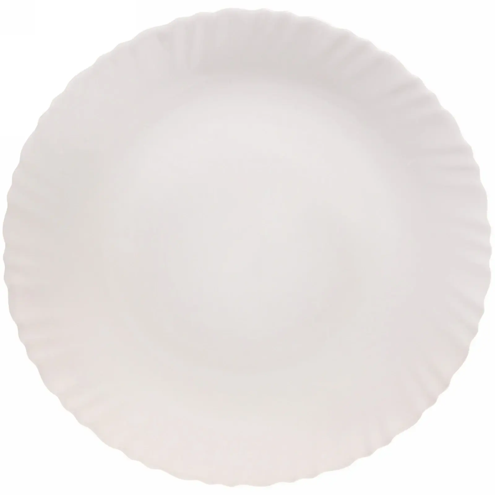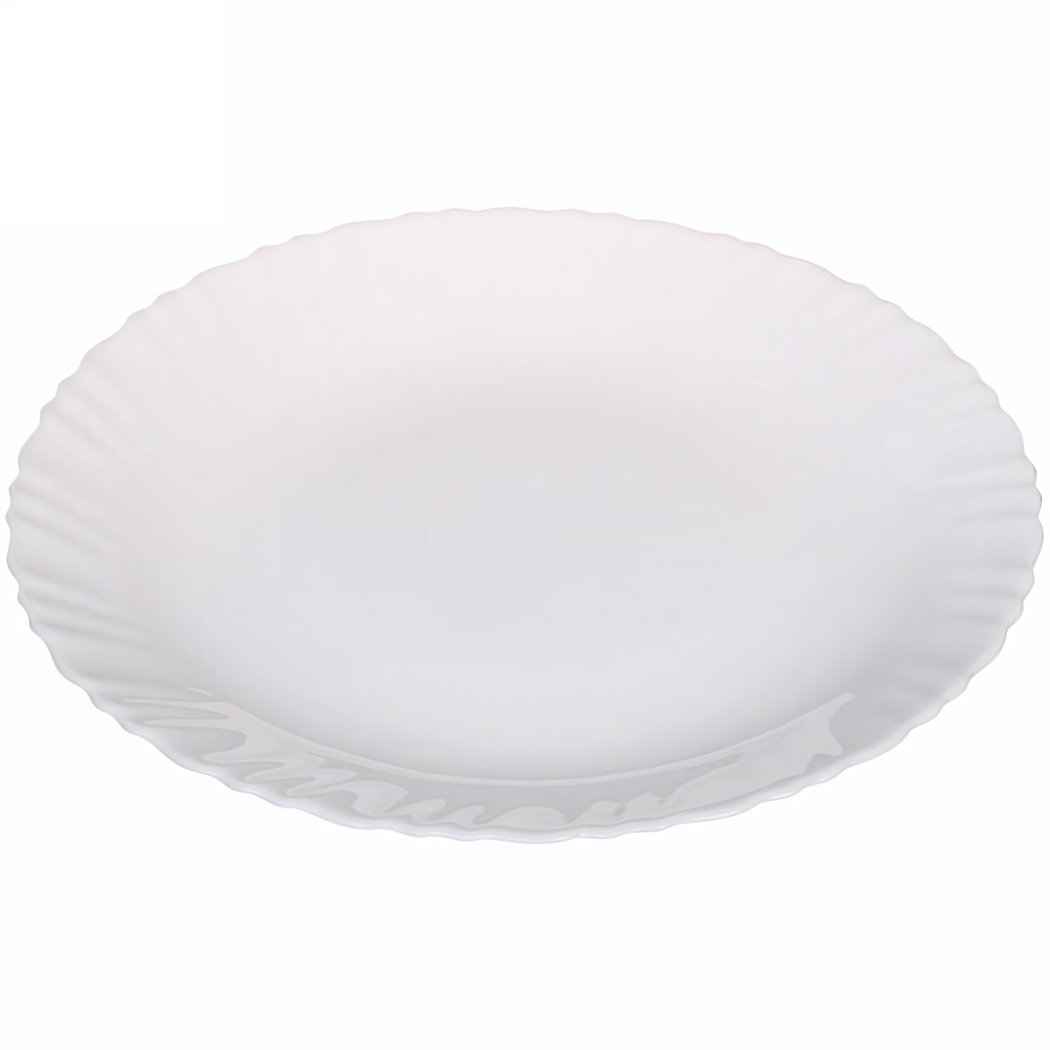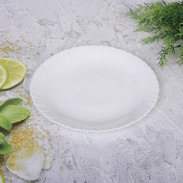 Тарелка выполнена в классическом белом цвете, что позволяет ей легко сочетаться с любым интерьером и сервировкой. Размер 23,5 см делает её универсальной для различных блюд. Стеклокерамика обеспечивает гладкую поверхность, что облегчает процесс мытья и предотвращает прилипание пищи.