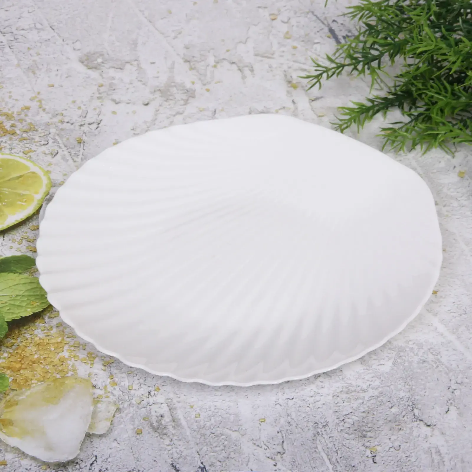 Тарелка из прочной стеклокерамики в форме ракушки станет изюминкой вашего стола. Её волнистые края и рельефная поверхность создают эффект движения волн, идеально подчёркивая свежесть морепродуктов, десертов или холодных закусок.