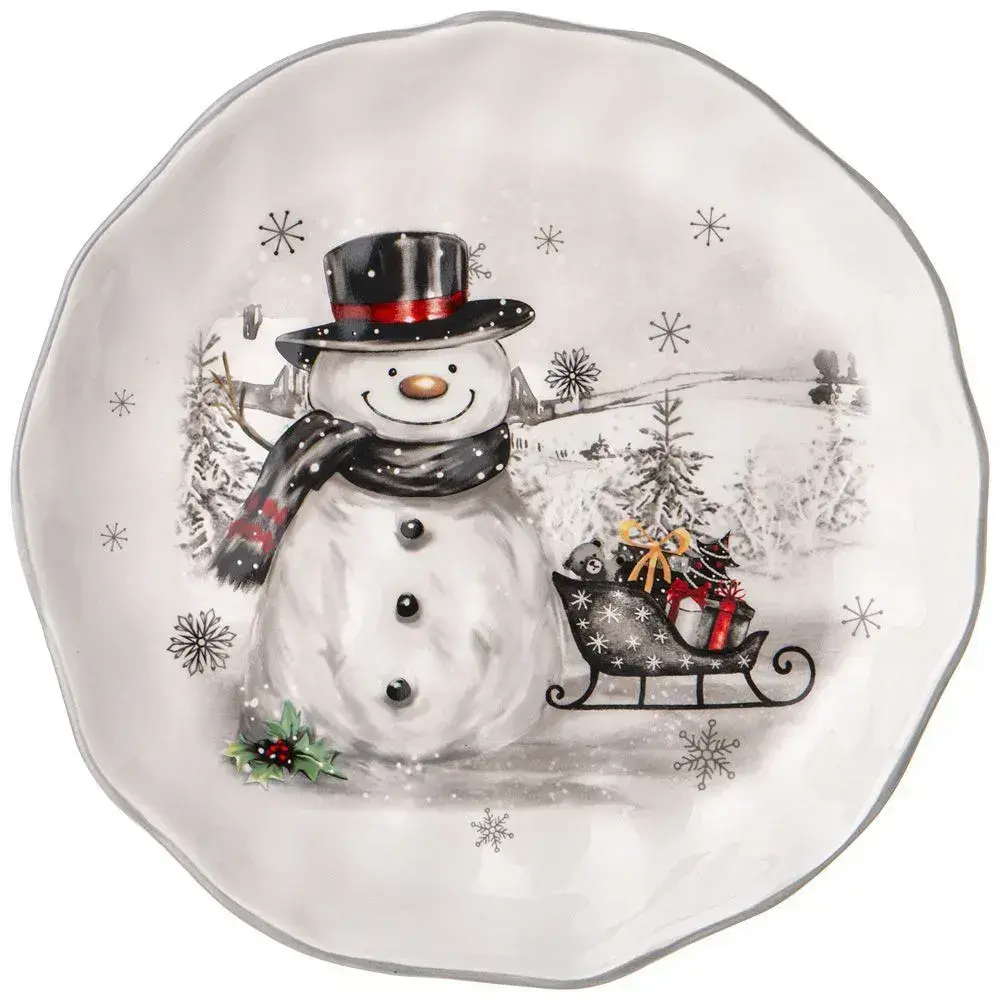 Создайте уютную новогоднюю атмосферу с керамической тарелкой, украшенной тематическим рисунком. Идеальный выбор для подачи закусок, десертов или праздничного декора. Яркий дизайн с улыбающимся снеговиком, нагруженными санями и зимним пейзажем превратит обычный ужин в сказочное торжество.