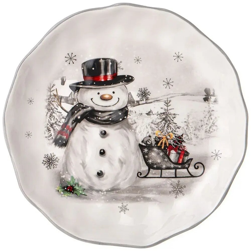 Тарелка закусочная «С Новым годом!» Agness 23х3,3 см, керамика, новогодний декор снеговик и санки