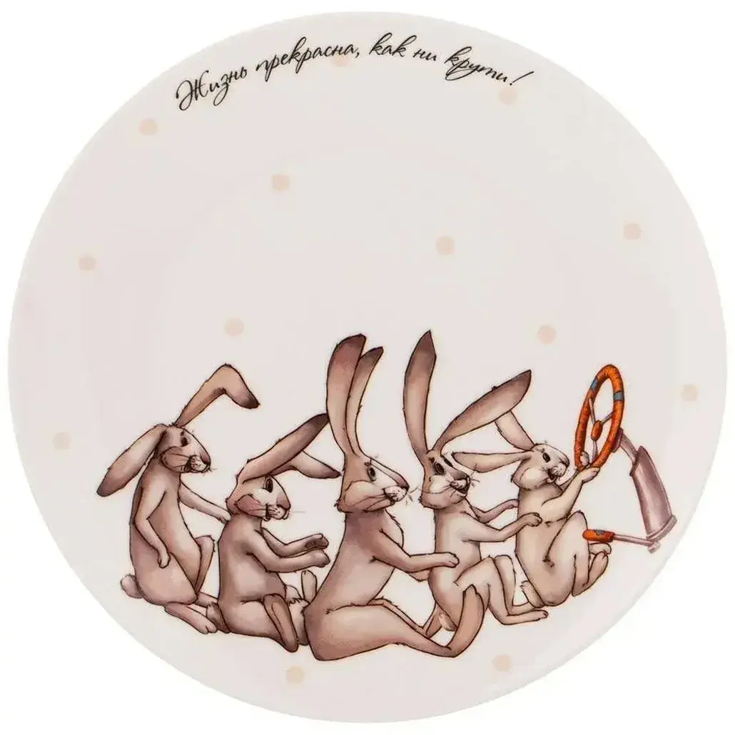 Дизайн с философской надписью «Жизнь прекрасна, как ни крути!» делает эту тарелку идеальным подарком для близких. Сохраняйте настроение праздника в каждом приеме пищи!
