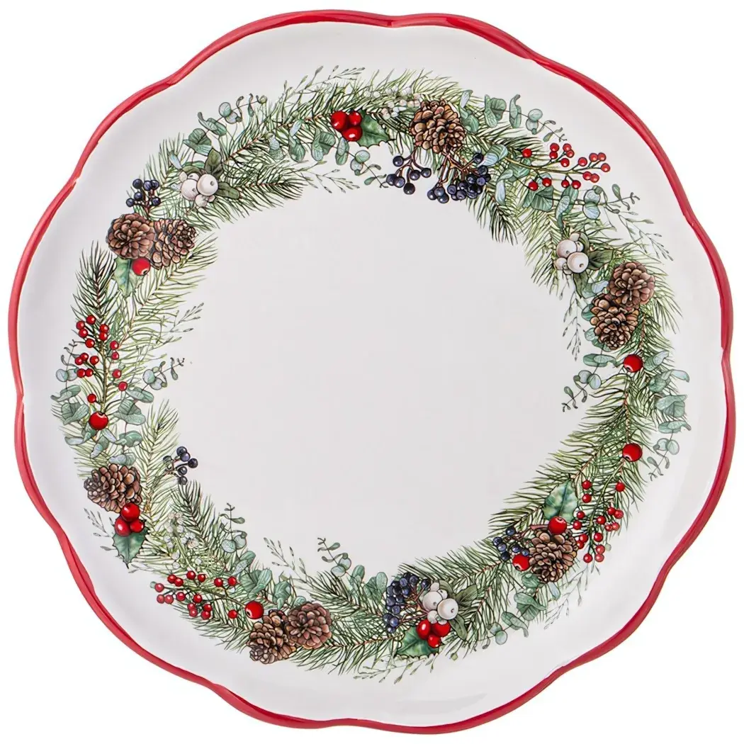 Тарелка «CELEBRATION» создана, чтобы подчеркнуть торжественность момента и добавить изысканности новогоднему ужину. Тонкостенный фарфор с рельефным краем и роскошным декором из хвойных веток, шишек и золотых акцентов превратит обычную трапезу в волшебный ритуал.