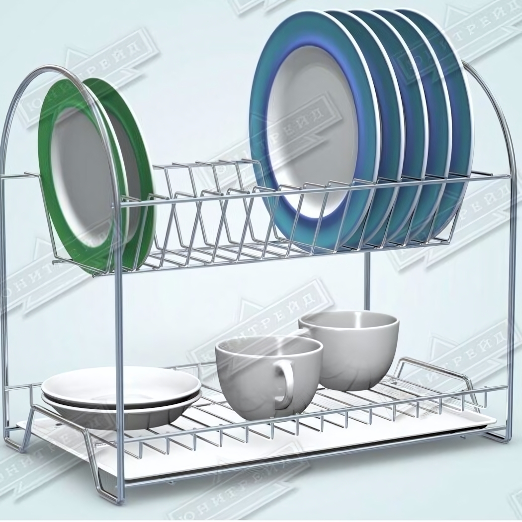 Тарелосушка имеет два уровня, что позволяет разместить на ней большое количество посуды. Верхний уровень идеально подходит для тарелок, а нижний — для чашек и других предметов. Она легко устанавливается на столе и подходит для использования в любом доме, будь то квартира или загородный дом.