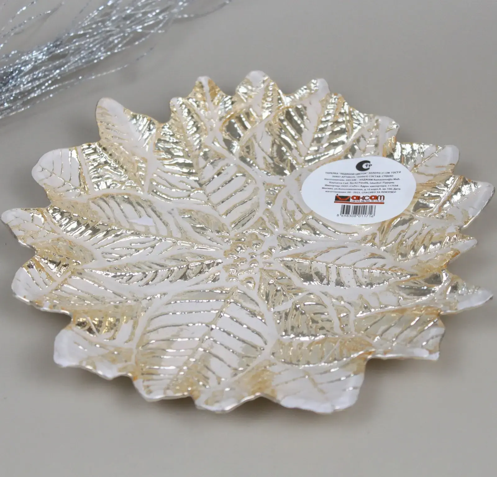 Эта изысканная тарелка станет настоящим украшением вашего стола и интерьера. Выполненная в форме цветка с золотыми акцентами, она привнесет в ваш дом атмосферу уюта и элегантности. Благодаря своему уникальному дизайну, тарелка не только функциональна, но и служит стильным аксессуаром для сервировки.