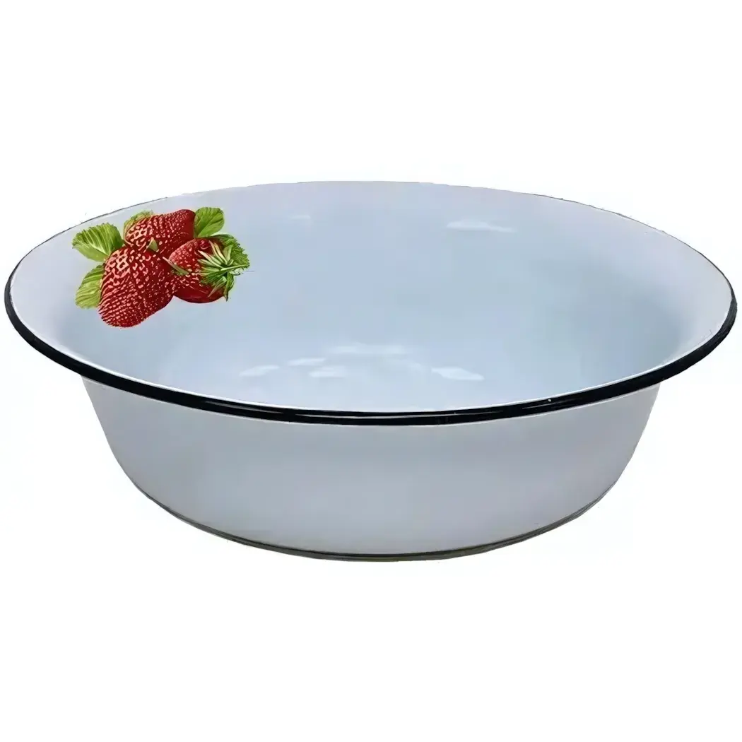 Таз эмалированный 16л с рисунком клубники, сталь, белый/черный