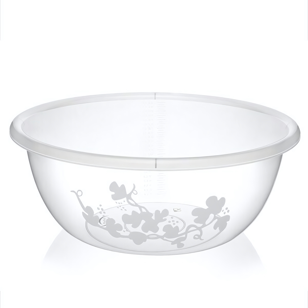 Таз мерный "Изобилие" 22 л, прозрачный с рисунком растений, укреплённый ободок