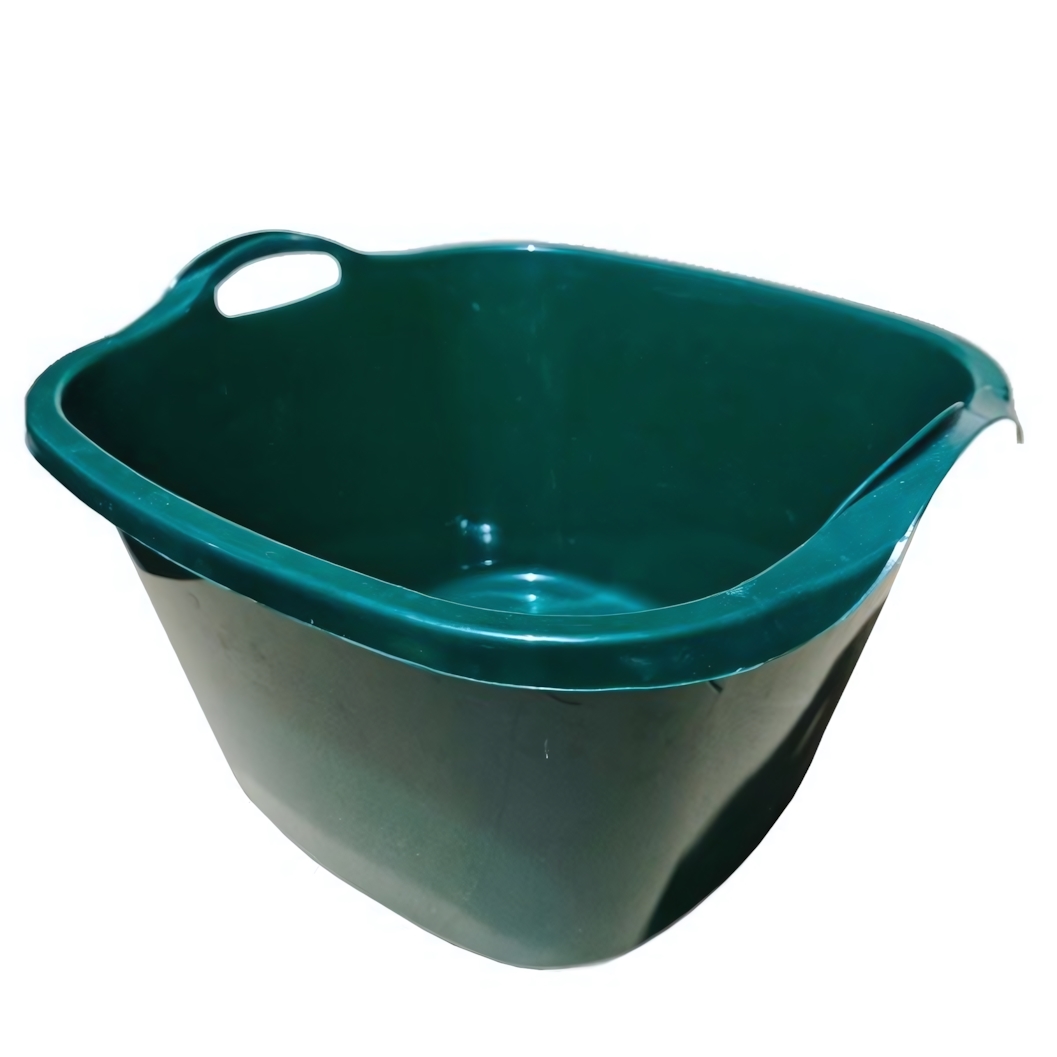 Таз изготовлен из прочного пластика, устойчивого к влаге и бытовым нагрузкам. Темно-зеленый цвет практичен в использовании и долго сохраняет аккуратный внешний вид.