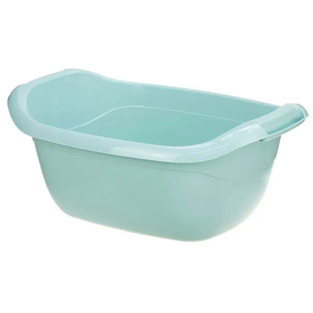 Таз выполнен из гладкого пластика светло-голубого цвета, оснащён утолщённой кромкой и прочными ручками, что упрощает эксплуатацию и продлевает срок службы изделия. Надёжный выбор для тех, кто ценит комфорт и функциональность.