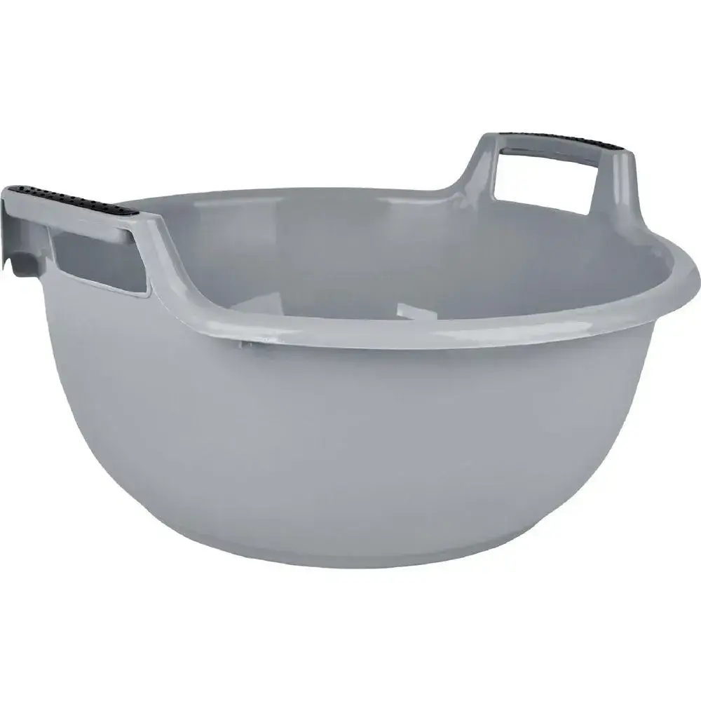 Таз пластиковый круглый 9л, 380х190 мм, цвет серый шторм, с ручками