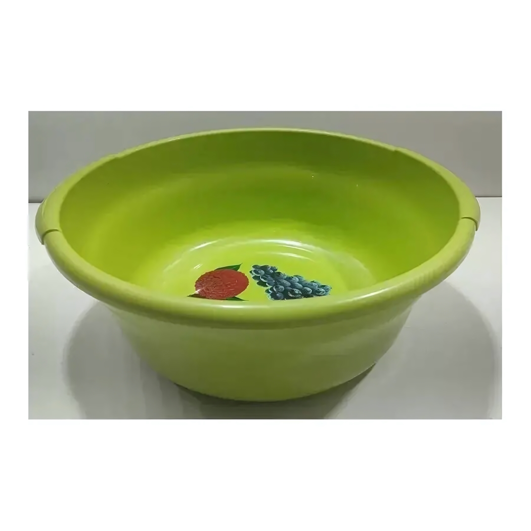 Объемный таз с удобными ручками станет незаменимым атрибутом для уборки, стирки и хозяйственных работ. Яркий фисташковый цвет и стилизованные рисунки фруктов добавят позитива в повседневные задачи.
