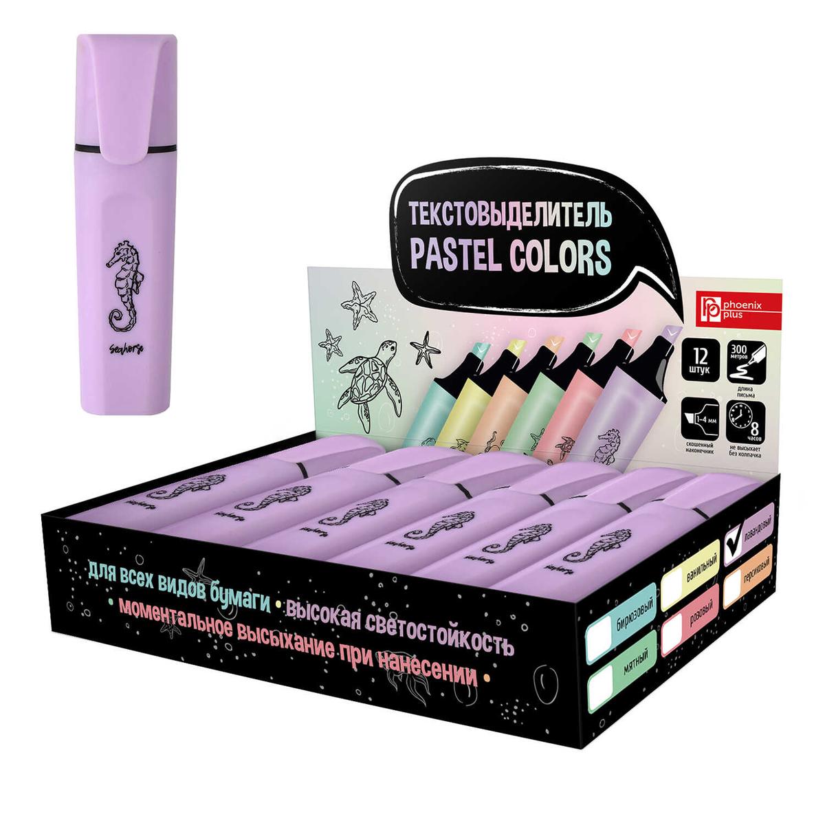 Пастельный текстовыделитель в нежном лавандовом оттенке станет незаменимым инструментом для выделения ключевых мыслей в тексте. Мягкий пигмент серии "Pastel Colors" акцентирует внимание на важных деталях, не перегружая зрение, что делает его идеальным выбором для студентов, школьников и офисных сотрудников. Корпус украшен изящным рисунком морского конька, выполненным методом качественной УФ-печати, что придает канцелярии уникальный вид.