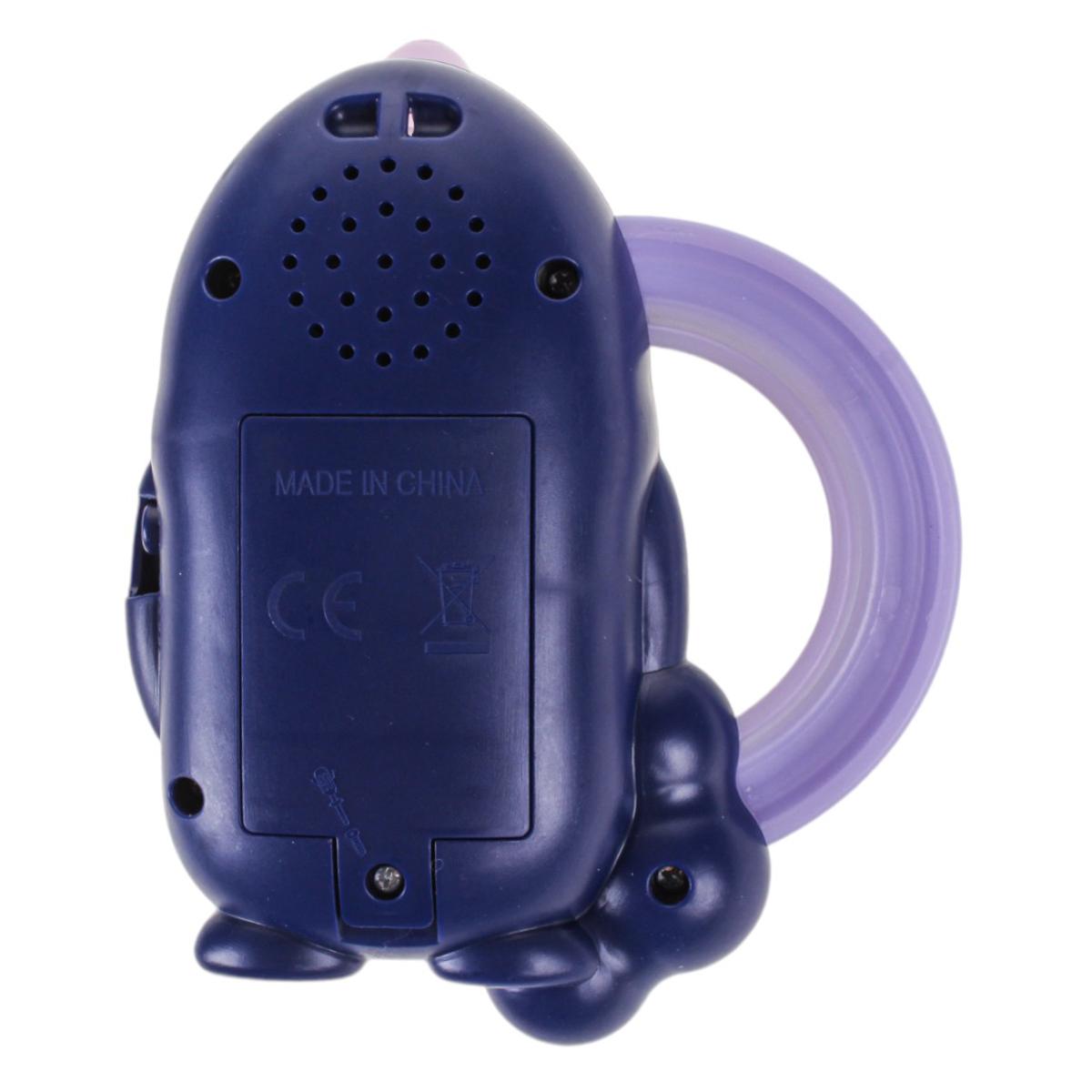Игрушка работает от батареек (не входят в комплект), что делает её полностью автономной. Прочный пластик корпуса обеспечивает долгий срок службы даже при активном использовании.