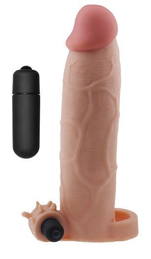 Выбирая эту насадку, вы получаете не только увеличение длины, но и возможность наслаждаться вибрацией, которая добавляет новые грани удовольствия. В комплекте идет вибратор, который легко подключается к насадке, что делает использование еще более увлекательным. Текстурированная поверхность с венозными деталями создает эффект реалистичности, что делает процесс более приятным.