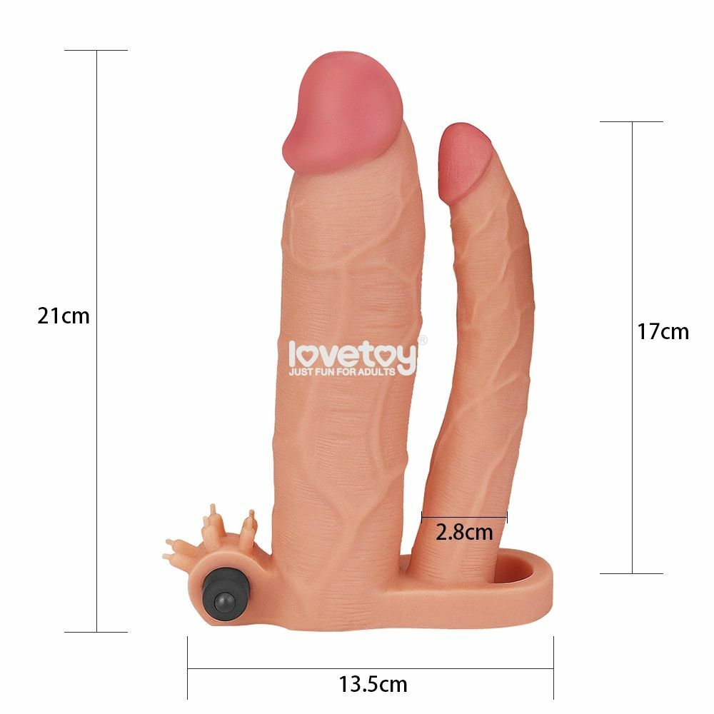 Насадка-удлинитель оснащена анальным стимулятором и вибрацией, что делает её идеальным выбором для пар и индивидуального использования. Длина основного элемента составляет 21 см, а анального отростка — 17 см, что позволяет достичь максимального удовольствия. Вибрация добавляет дополнительный уровень наслаждения, а кольцо под мошонку обеспечивает надежную фиксацию.