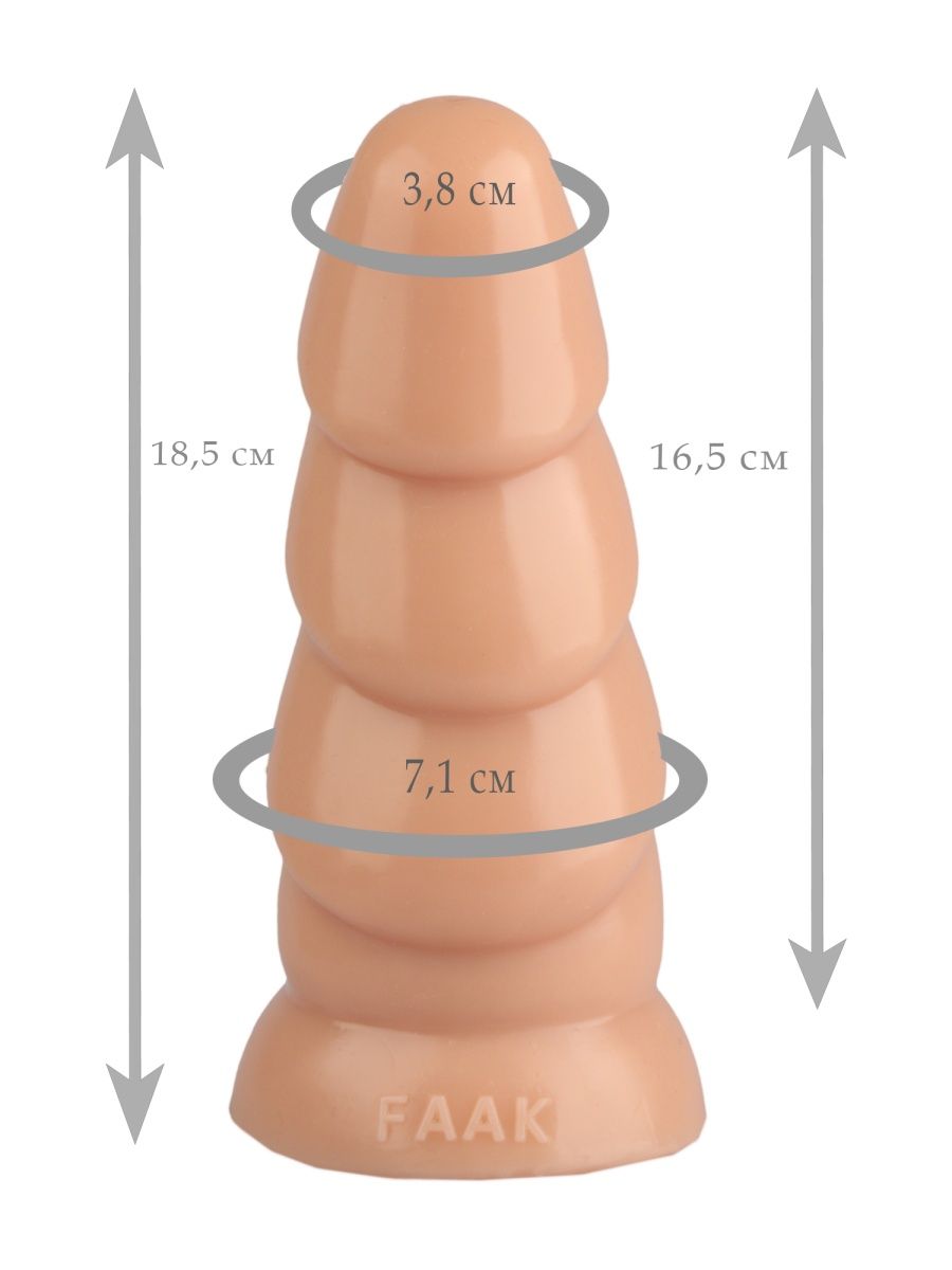 Изделие имеет общую длину 18,5 см, при этом рабочая (вводимая) длина составляет 16,5 см. Диаметр варьируется от минимального 3,8 см в верхней части до максимального 7,1 см в средней зоне, что позволяет адаптировать ощущения под индивидуальные предпочтения. Телесный цвет делает втулку визуально нейтральной и привлекательной.