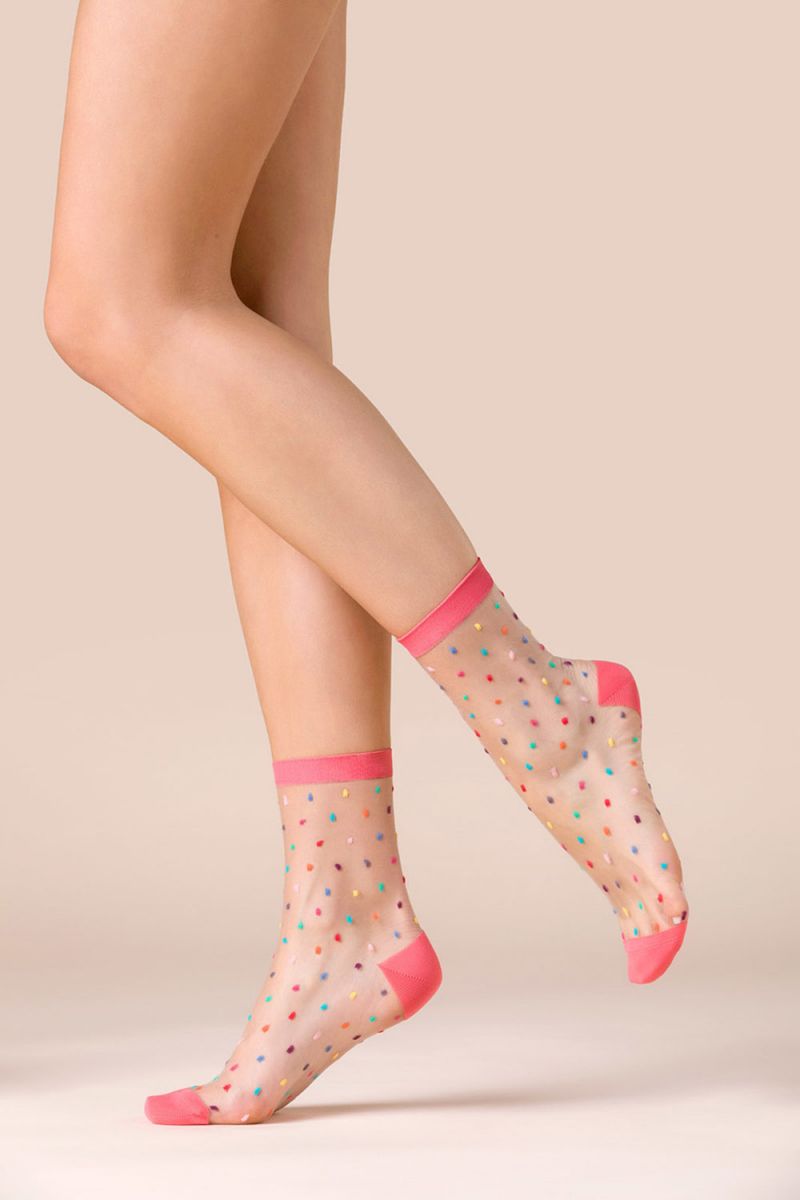Прозрачные носочки "Gigi" — это деликатное сочетание телесной основы и яркого конфетти, которое привлекает внимание к ногам и добавляет образу свежести. Нежно-розовая отделка аккуратно подчеркивает щиколотку, создавая аккуратный и женственный силуэт. Идеальный вариант для тех, кто любит стильные детали и хочет добавить немного настроения даже в повседневный образ.