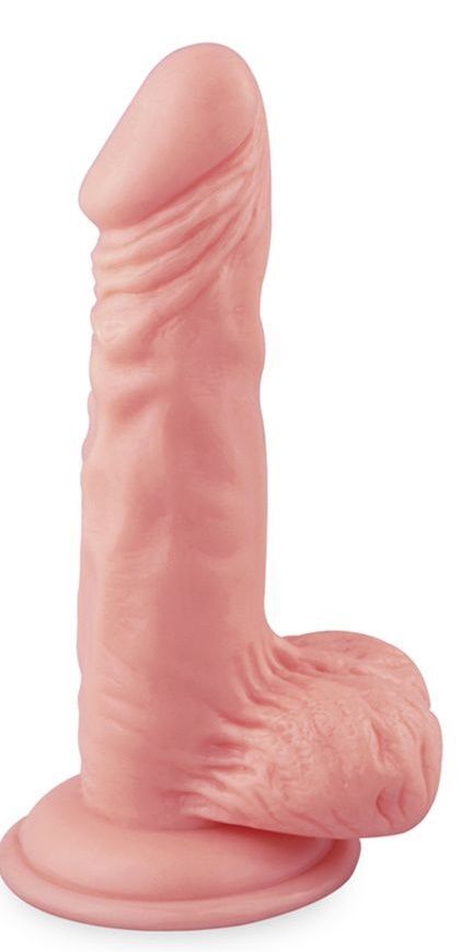 Телесный фаллоимитатор 16 см с мошонкой