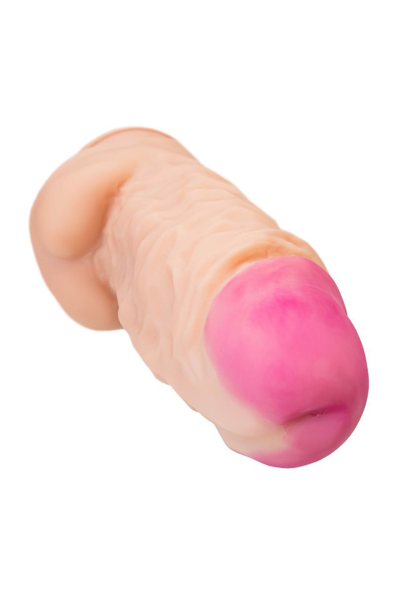 Двухслойная структура изделия сочетает упругий каркас и нежное внешнее покрытие. Рельефный ствол с утолщением и детализированная мошонка создают максимальный реализм. Материал безопасен для тела и прост в уходе.