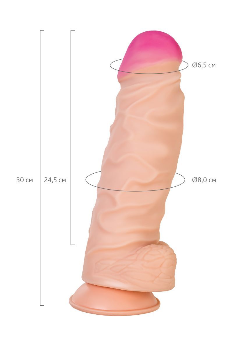 Рабочая длина 24.5 см при общих габаритах 30 см позволяет комфортно использовать изделие. Материал neoskin полностью гипоаллергенен и легко очищается теплой водой с мылом. Телесный цвет с естественным градиентом и съемный пигмент на головке обеспечивают эстетичность внешнего вида.