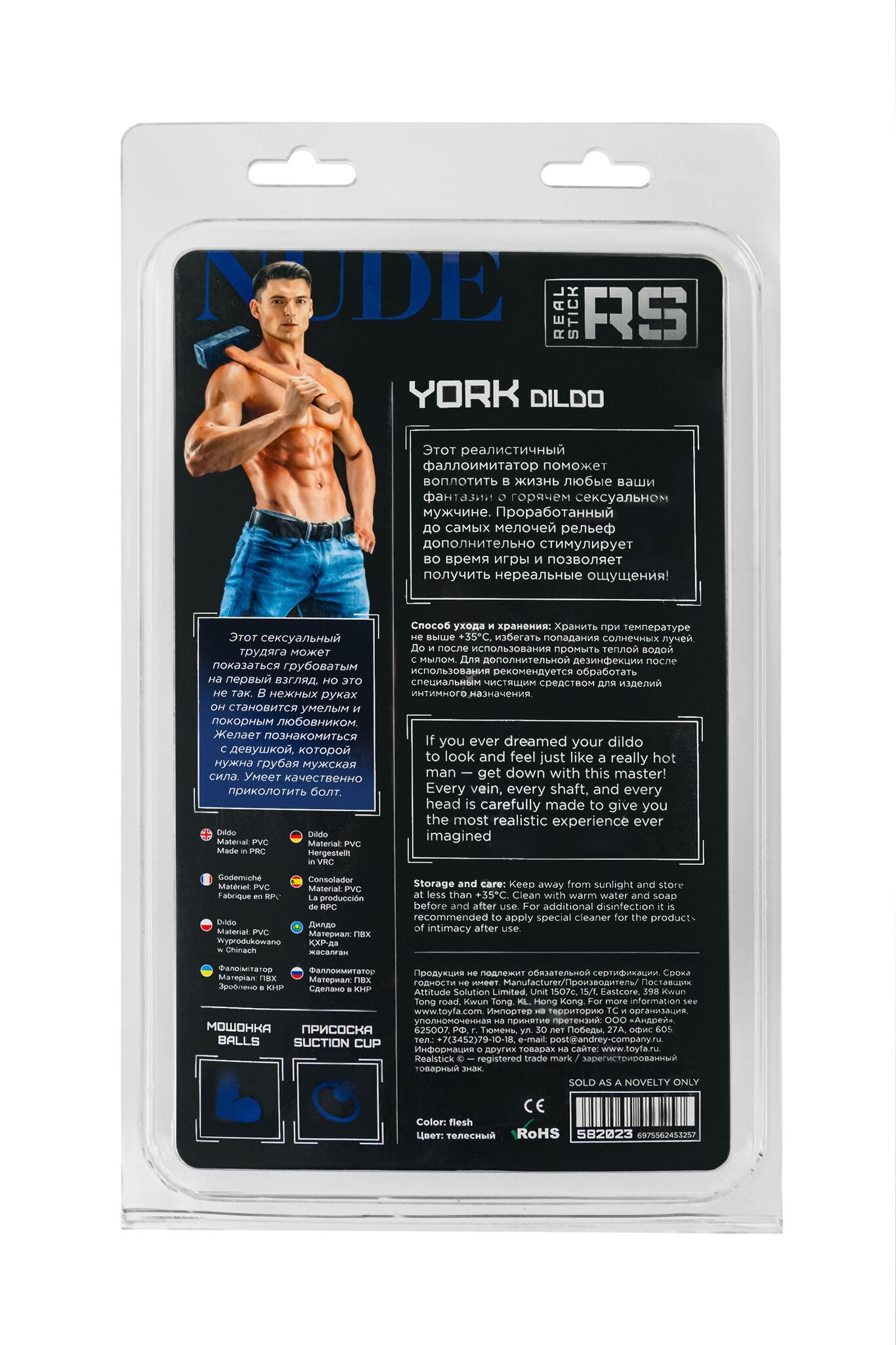 Фаллоимитатор реалистичный "York" с присоской, телесный, 20 см, диаметр 4.5 см
