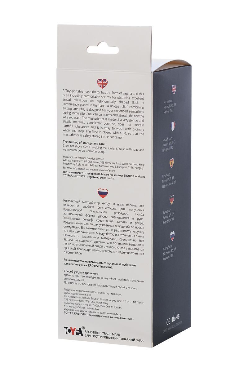 Мастурбатор-вагина A-Toys в колбе, TPE, телесный цвет, 22.5 см, эргономичный дизайн