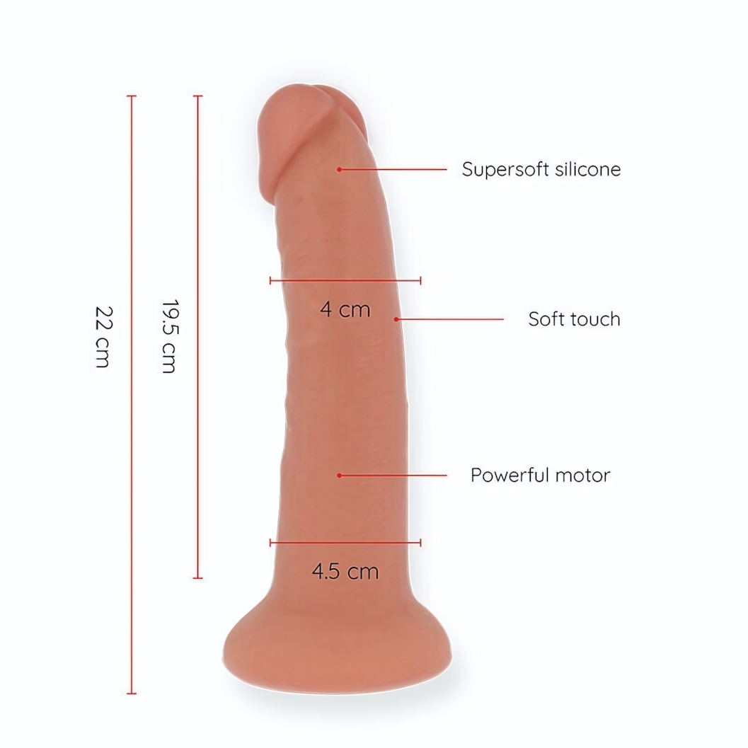 Общая длина изделия составляет 22 см, из которых рабочая (вводимая) часть — 19,5 см, а диаметр — 4,5 см. Такая эргономика делает его удобным для использования как в одиночку, так и в паре. Гибкость материала в сочетании с устойчивым основанием гарантирует комфорт в любых позах. Для сохранения свойств силикона рекомендуется использовать лубриканты строго на водной основе. После применения игрушку достаточно промыть теплой водой с мягким мылом или воспользоваться специальным антисептиком для интимных изделий.