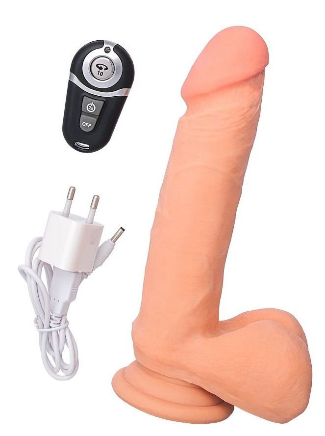 Вибратор-реалистик 'Realstick Elite' на присоске, 20см, телесный, TPR, с пультом ДУ
