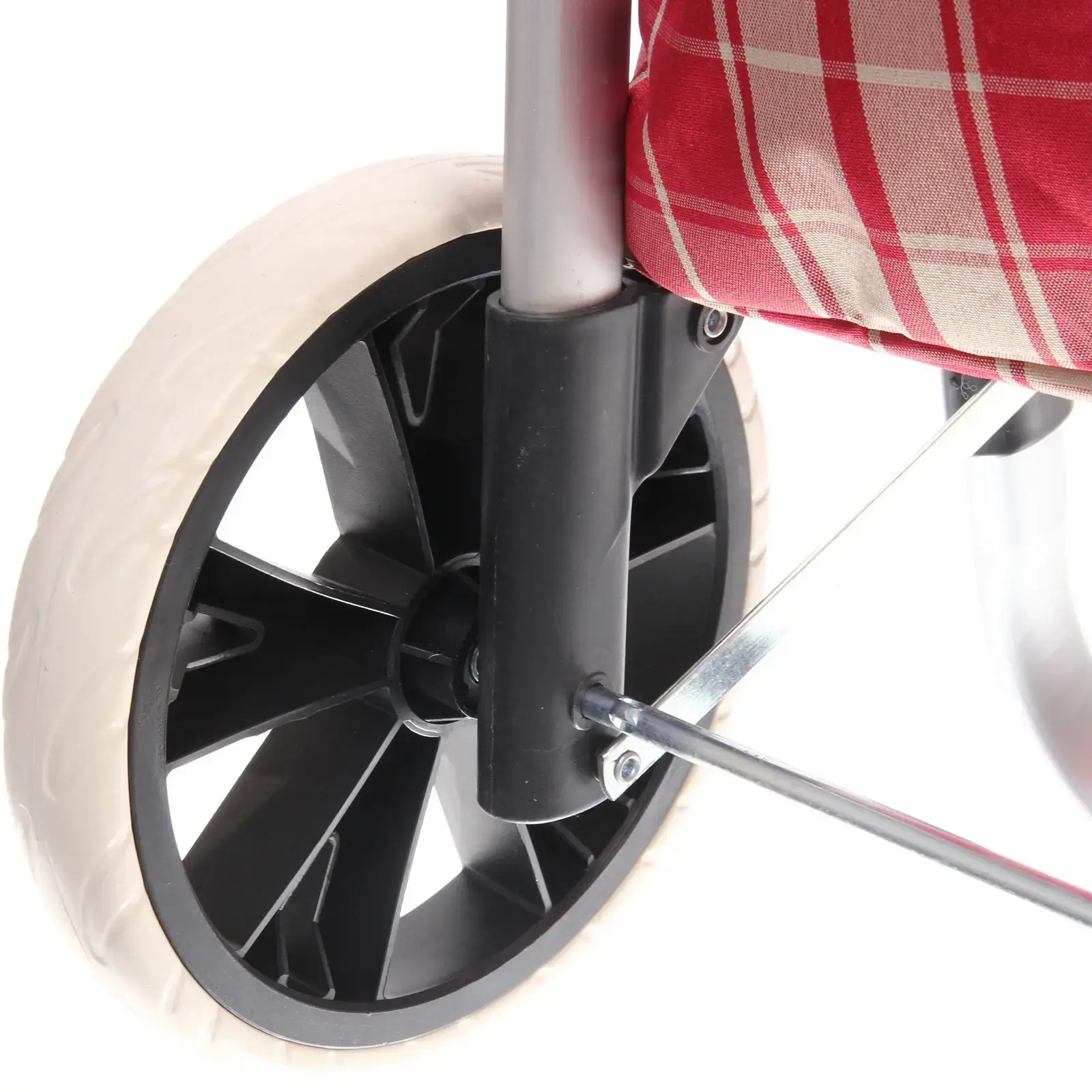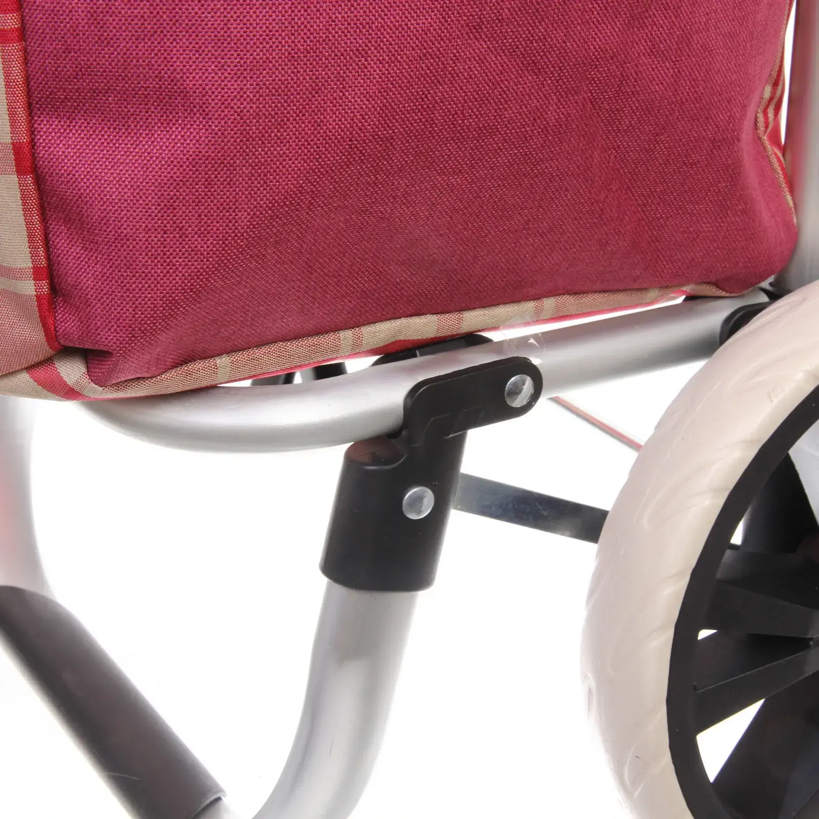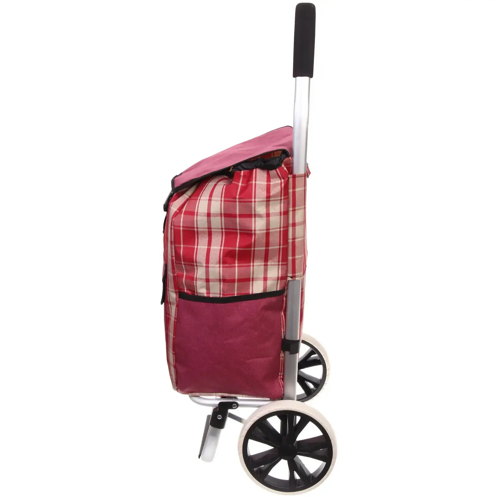 Тележка имеет алюминиевую раму, что делает её легкой и прочной. Сумка, выполненная из водонепроницаемого текстиля, легко закрывается на шнурок и фиксируется пластиковой застежкой. Два больших съемных колеса диаметром 21 см обеспечивают отличную маневренность и легкость передвижения по различным поверхностям. Тележка подходит для использования в городе, на даче или во время выездов на природу.