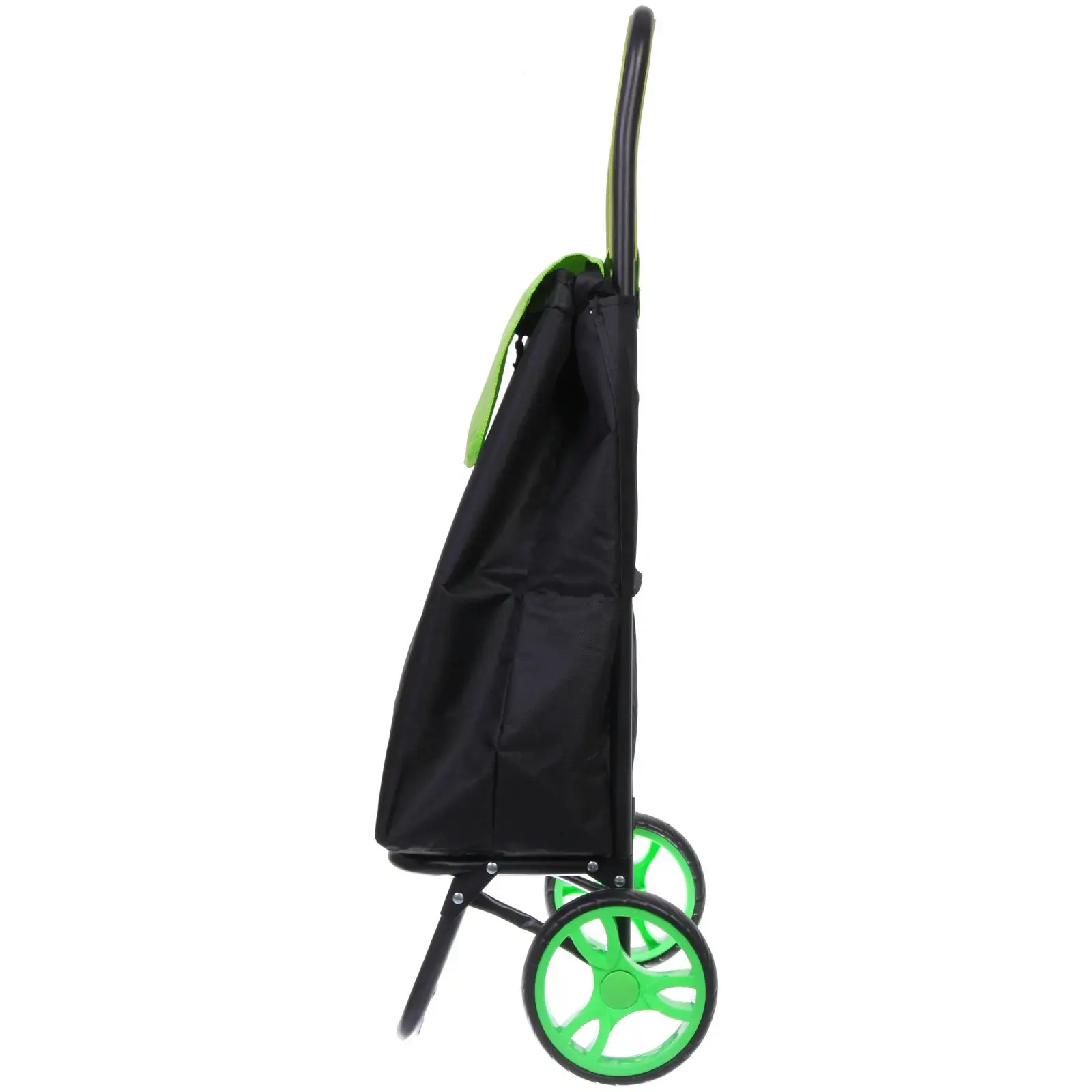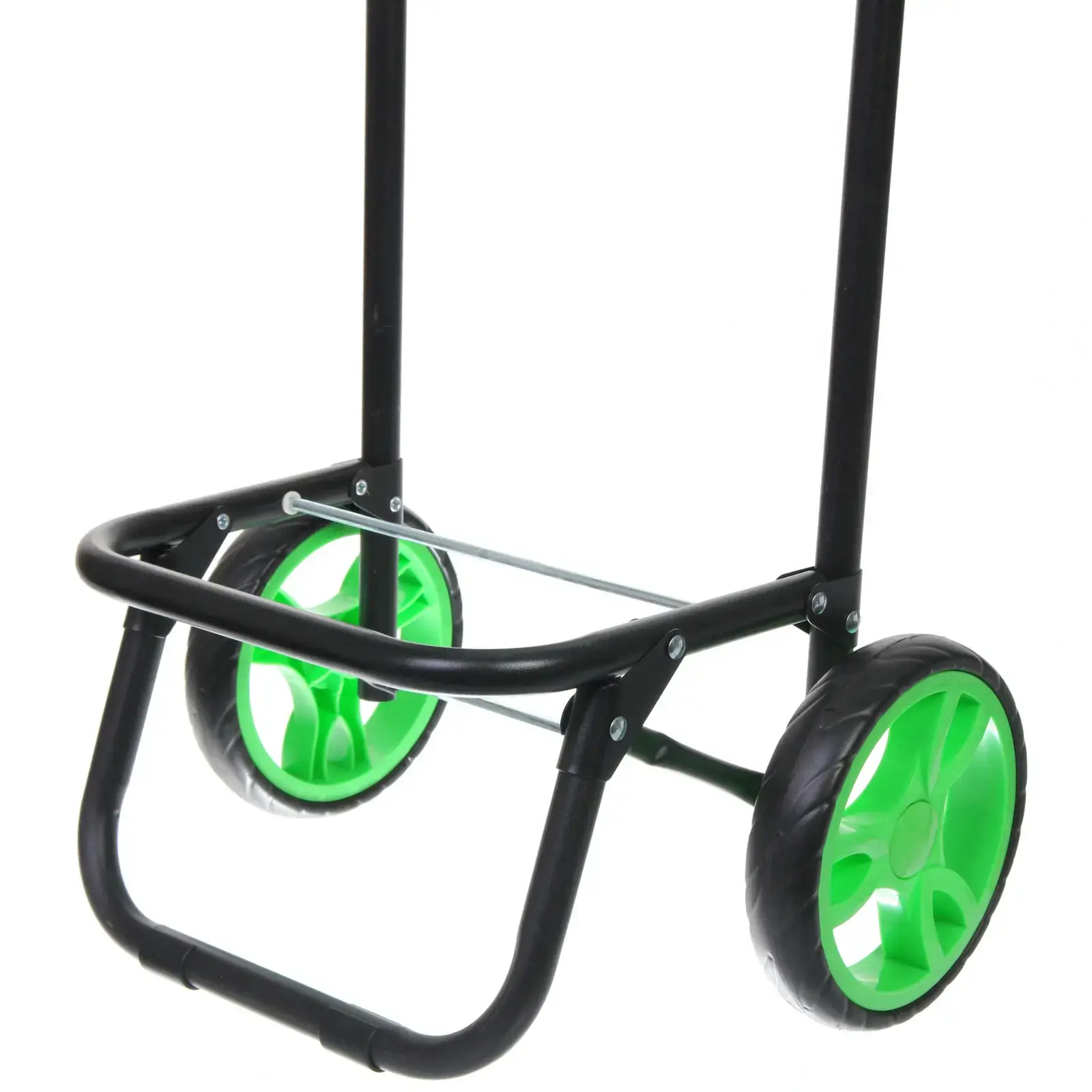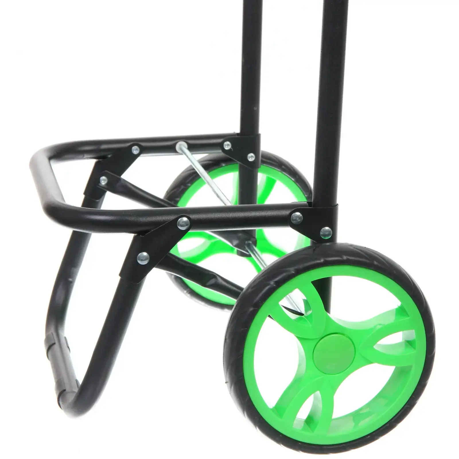 Тележка имеет стильный салатовый цвет, который добавляет яркости в повседневные покупки. Ручка тележки выполнена из металла с пластиковой обивкой, что обеспечивает комфортный захват. Сумка закрывается на застежку, что позволяет надежно защищать содержимое. Эта тележка станет вашим незаменимым помощником в быту, позволяя экономить время и силы.
