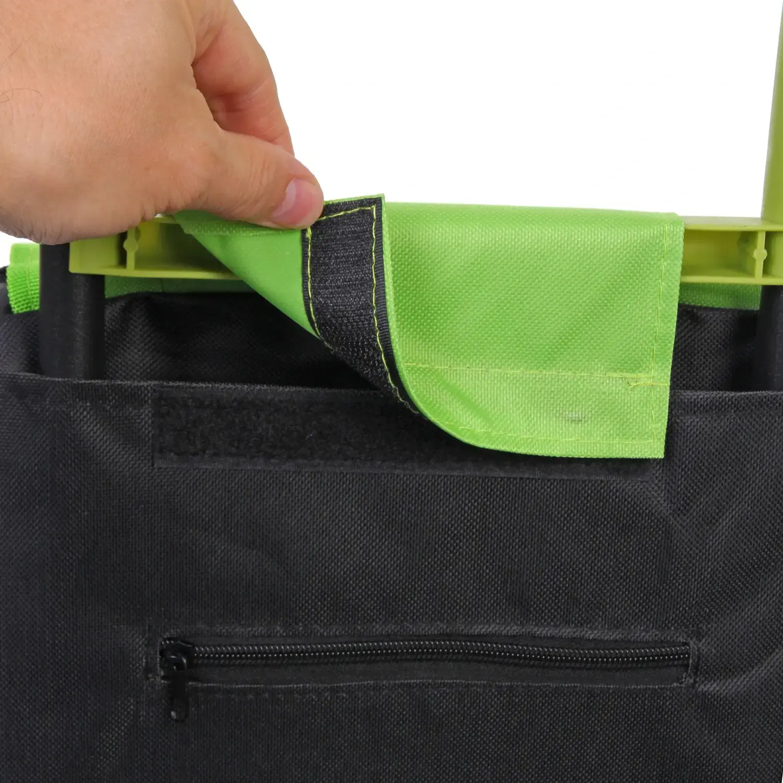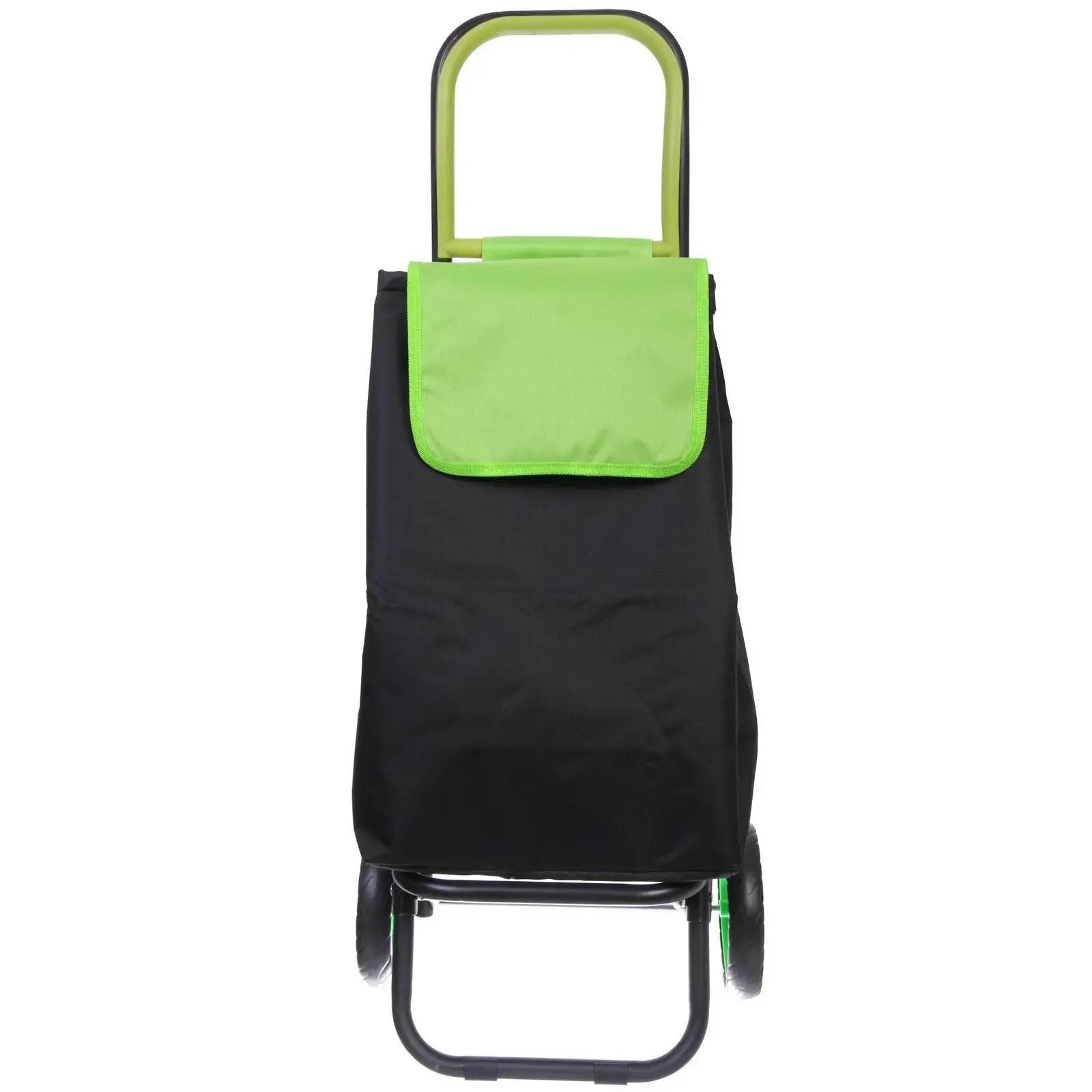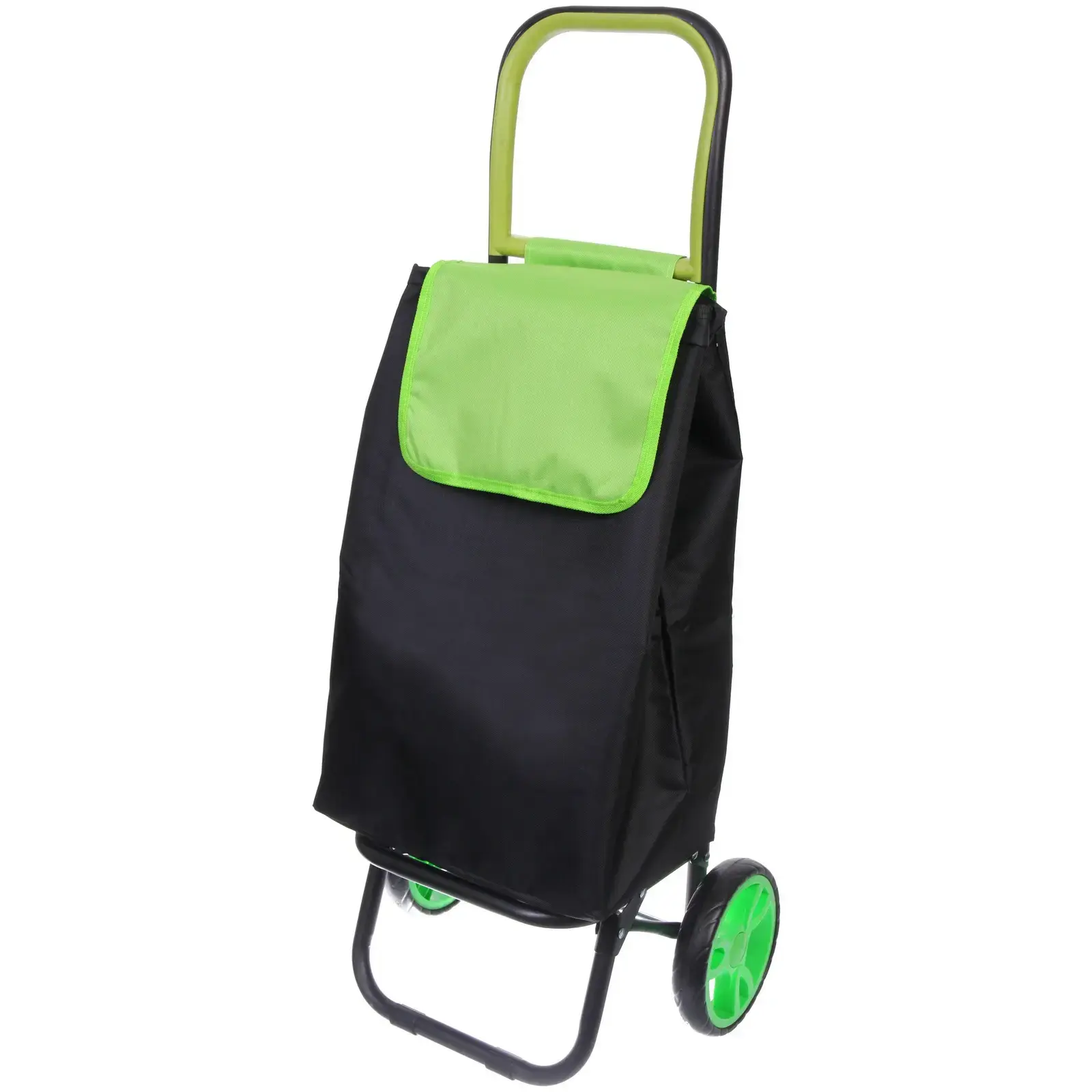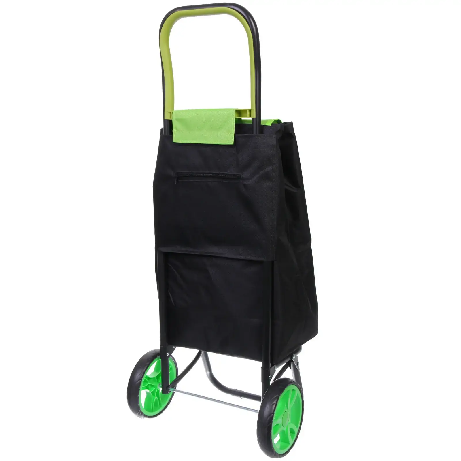 Тележка имеет стильный салатовый цвет, который добавляет яркости в повседневные покупки. Ручка тележки выполнена из металла с пластиковой обивкой, что обеспечивает комфортный захват. Сумка закрывается на застежку, что позволяет надежно защищать содержимое. Эта тележка станет вашим незаменимым помощником в быту, позволяя экономить время и силы.