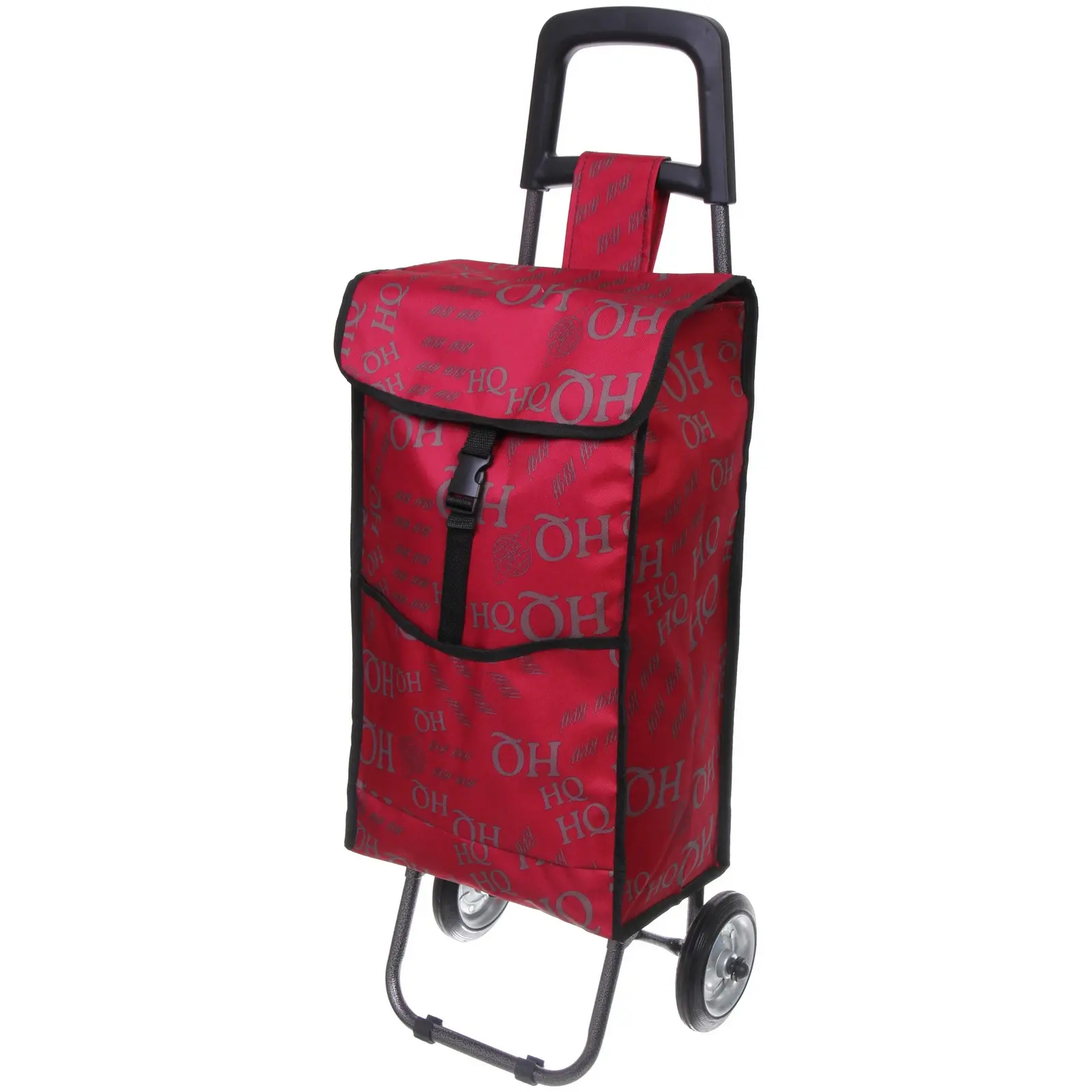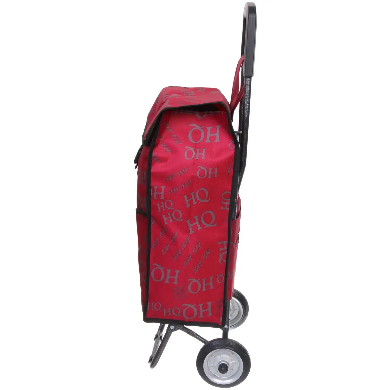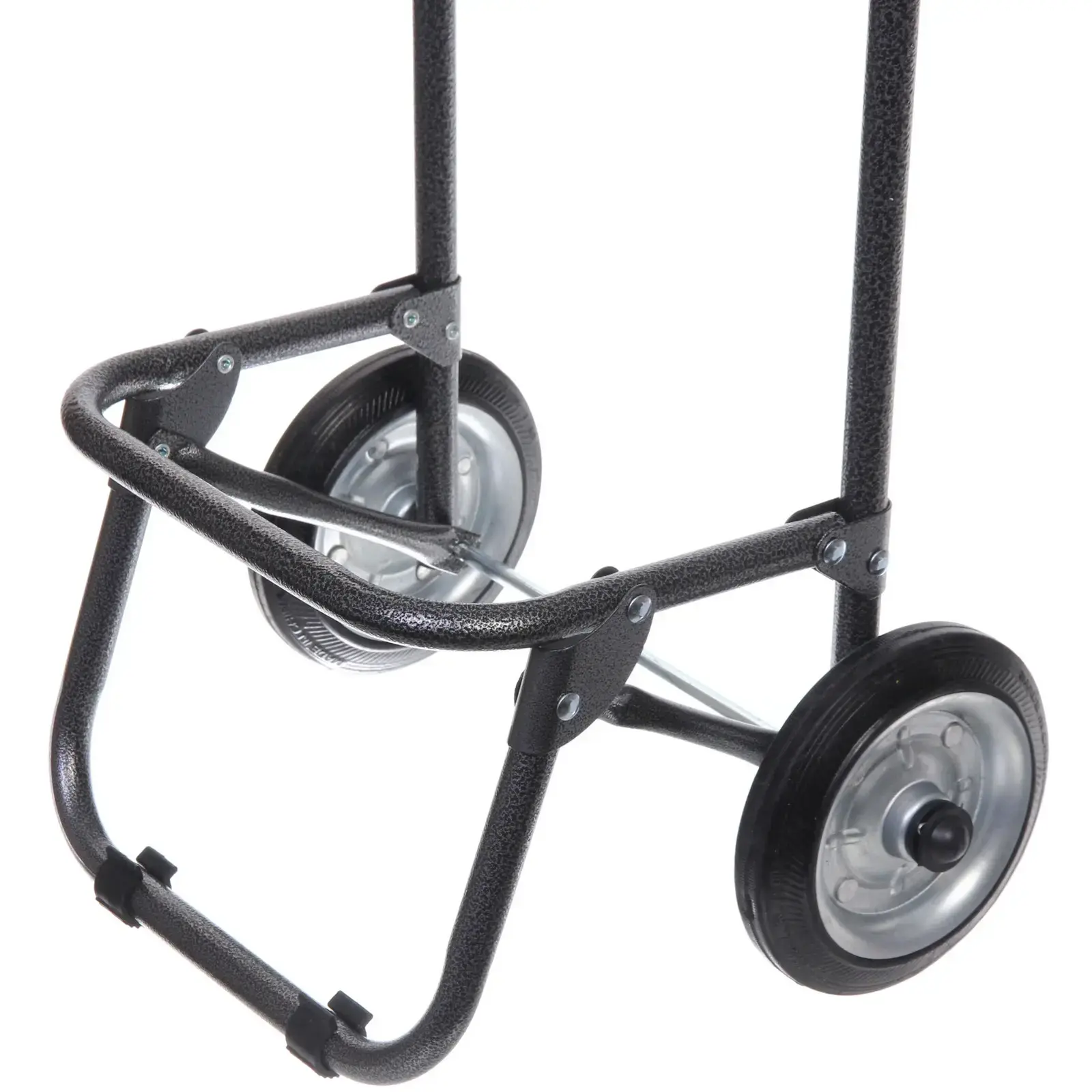 Тележка выполнена из прочных материалов: металл и текстиль, что обеспечивает её долговечность. Сумка закрывается на клапан и оснащена застежкой, что позволяет надежно хранить ваши вещи. Дополнительный карман на боковой стороне сумки предоставляет возможность удобно разместить мелкие предметы. Эта тележка — отличный выбор для тех, кто ценит функциональность и стиль в одном изделии.