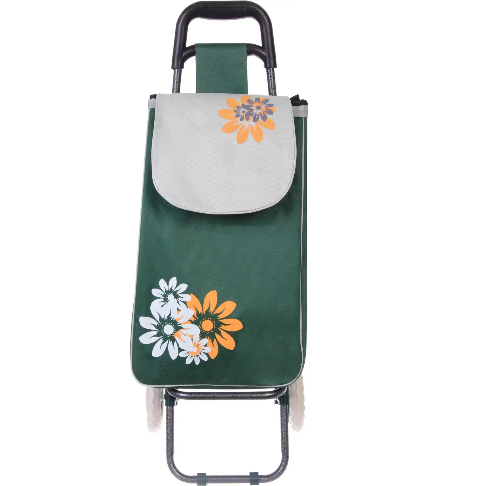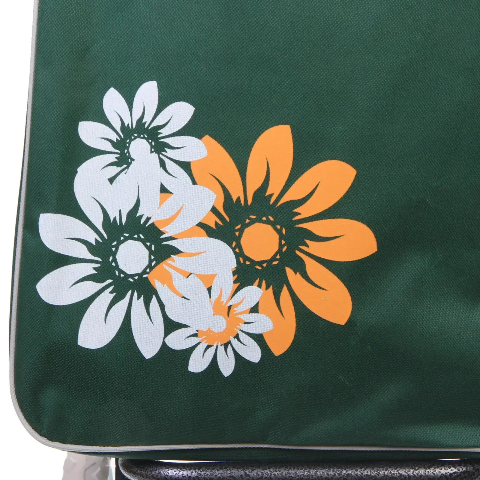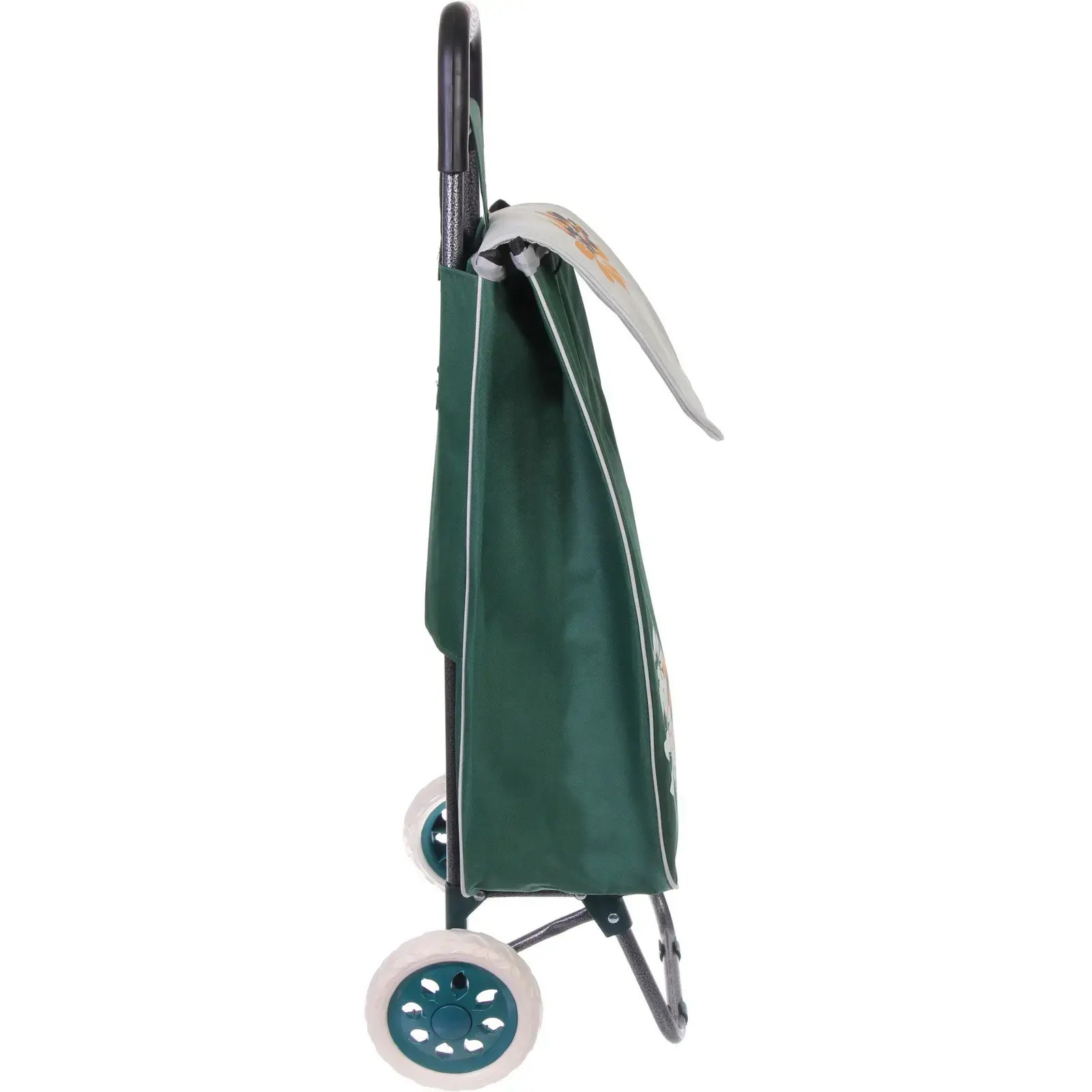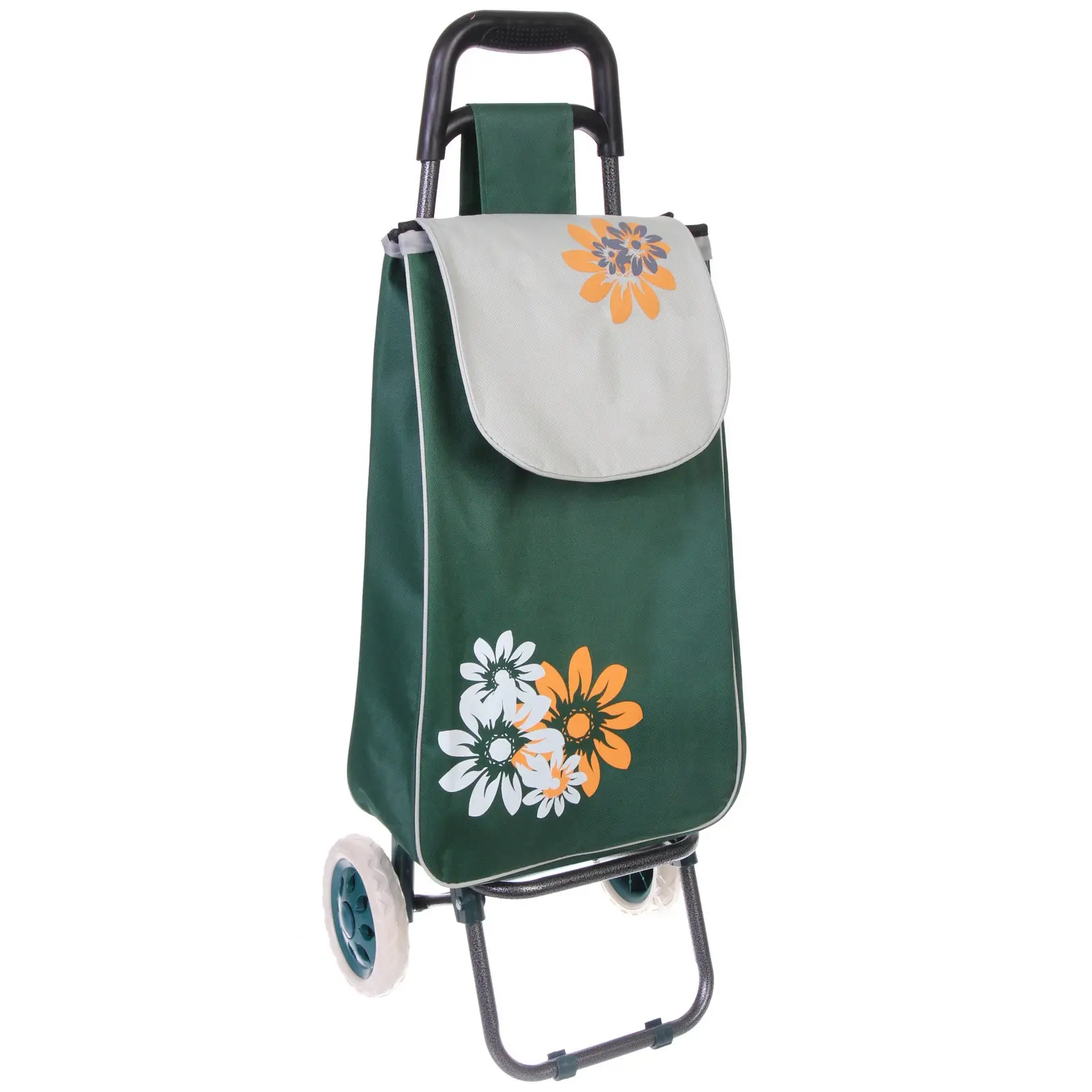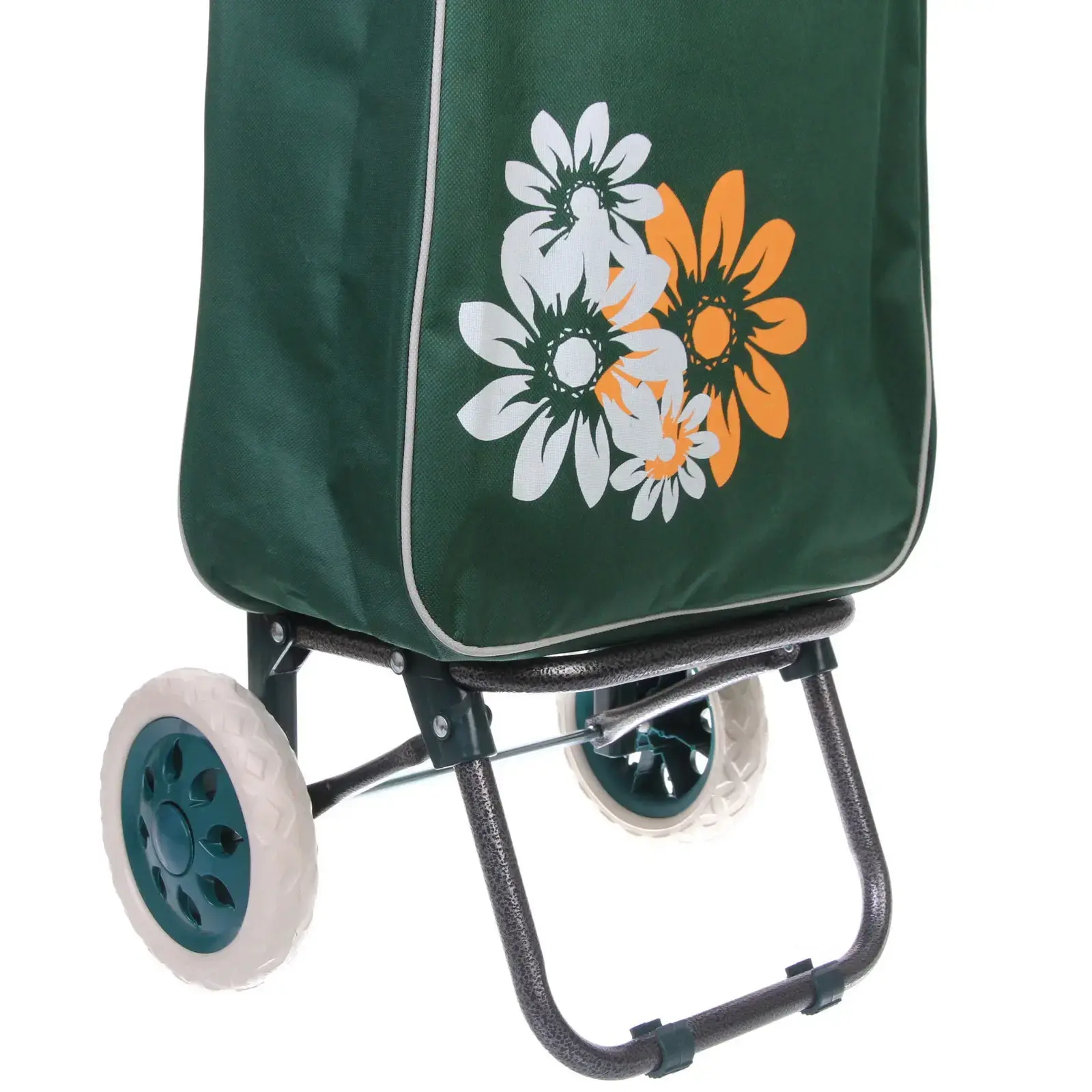 Сумка - тележка хозяйственная складная, 93x33x30 см, колёса 16 см, цветочный принт, зелёный