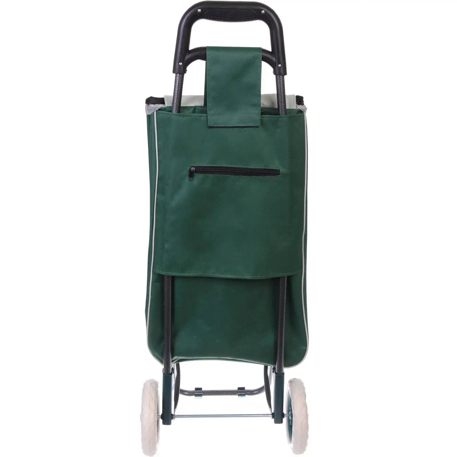 Размеры в сложенном виде (93x33x30 см) позволяют хранить тележку даже в небольших помещениях. Тёмно-зелёный цвет с цветочным принтом сочетает практичность с эстетикой — не придётся прятать от посторонних глаз.