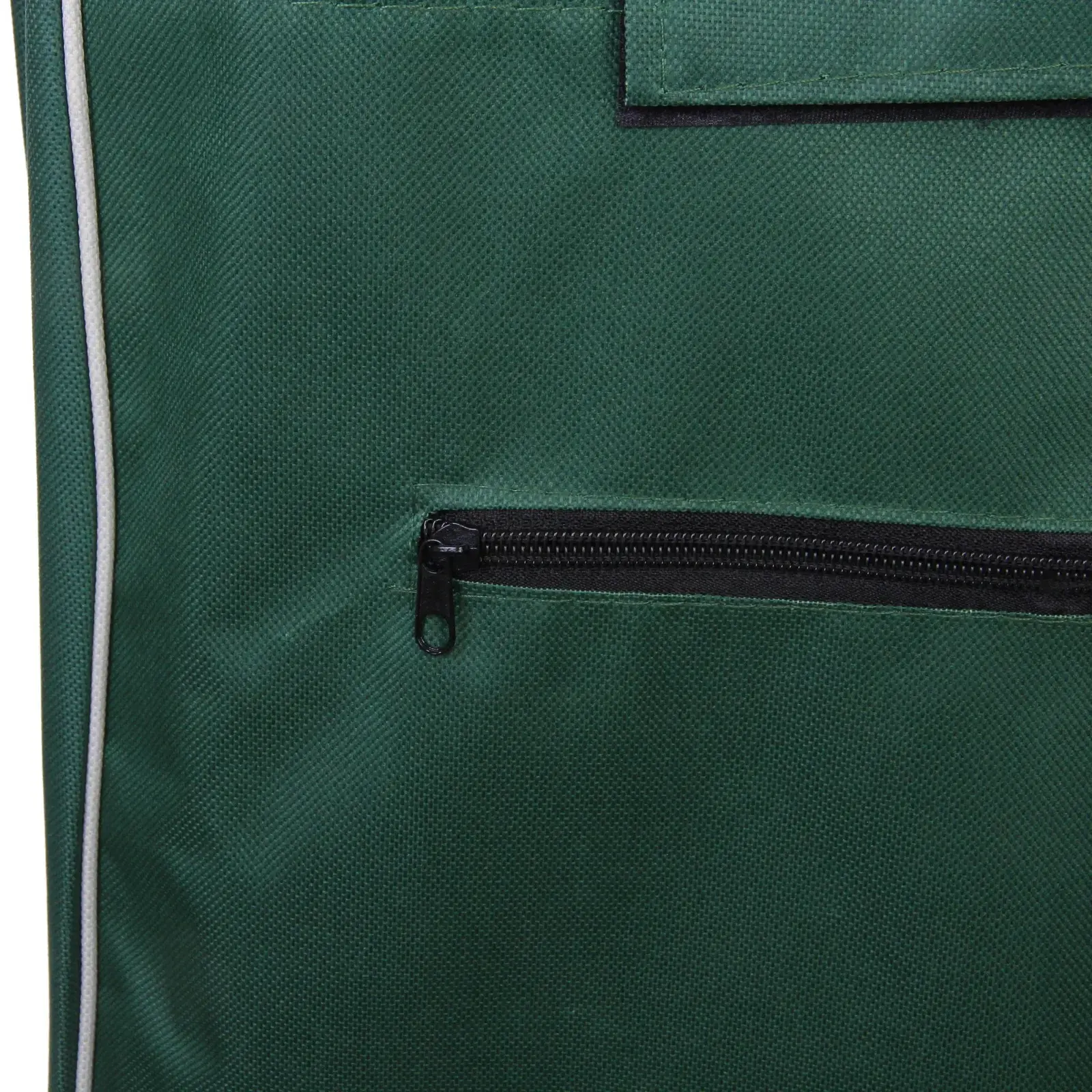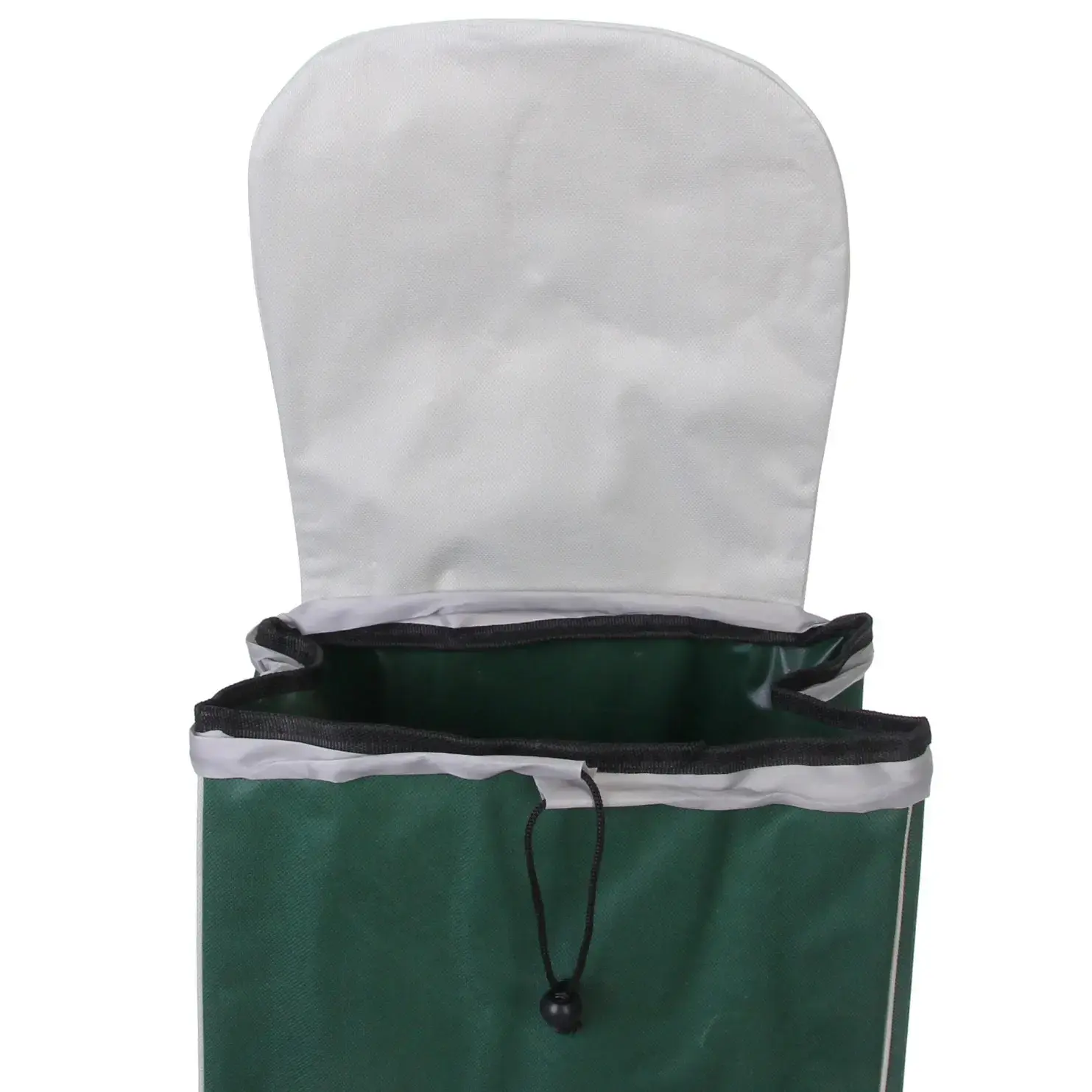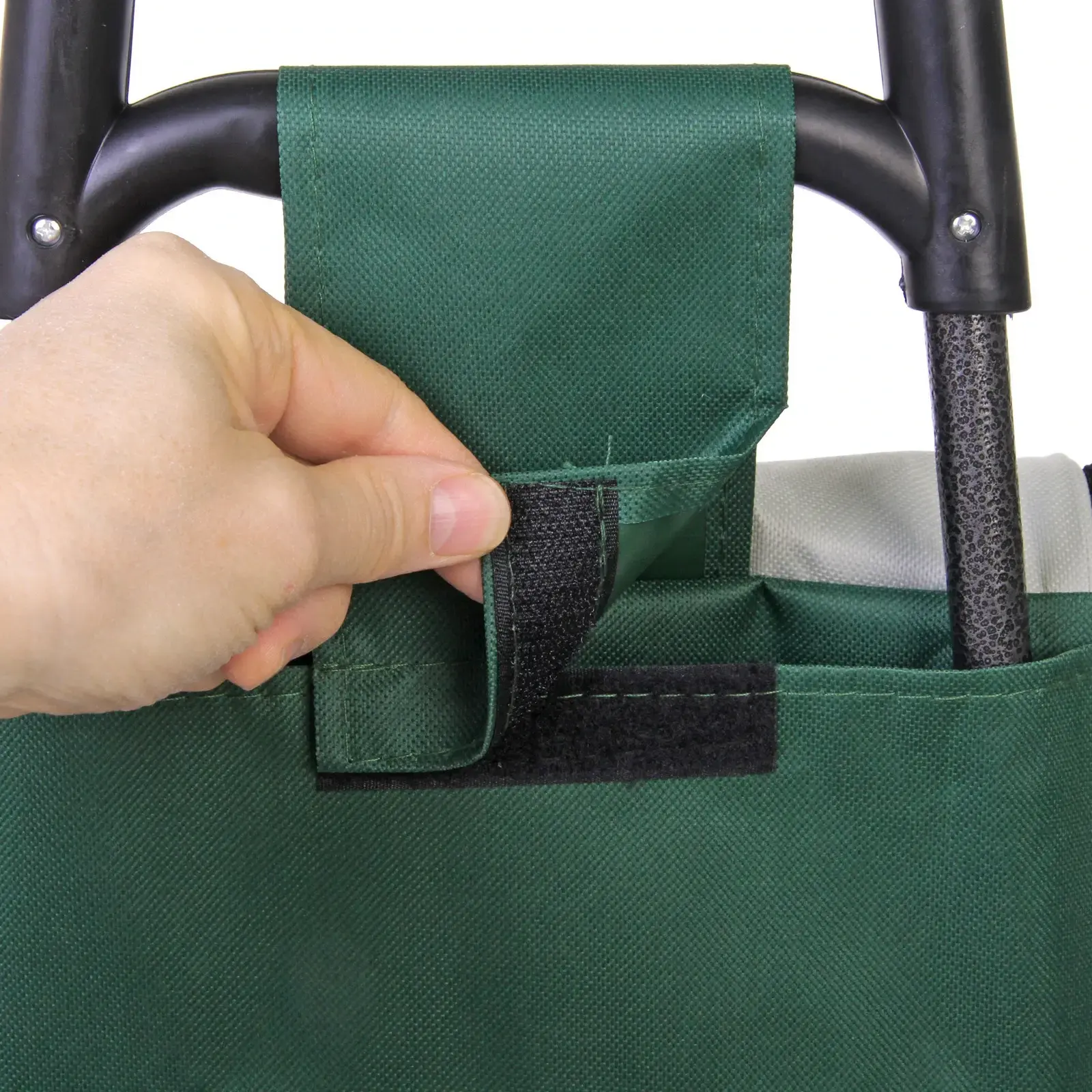 Сумка полностью отсоединяется от каркаса для лёгкой очистки. Двойная система фиксации (липучка + шнурок) предотвращает случайное открытие во время транспортировки. Металлическая подножка обеспечивает устойчивость при погрузке.
