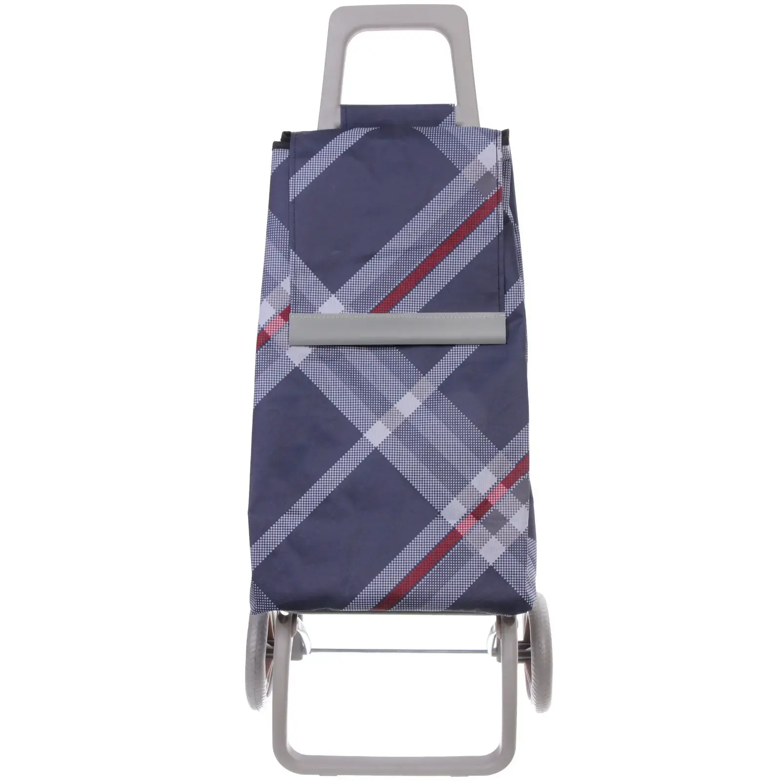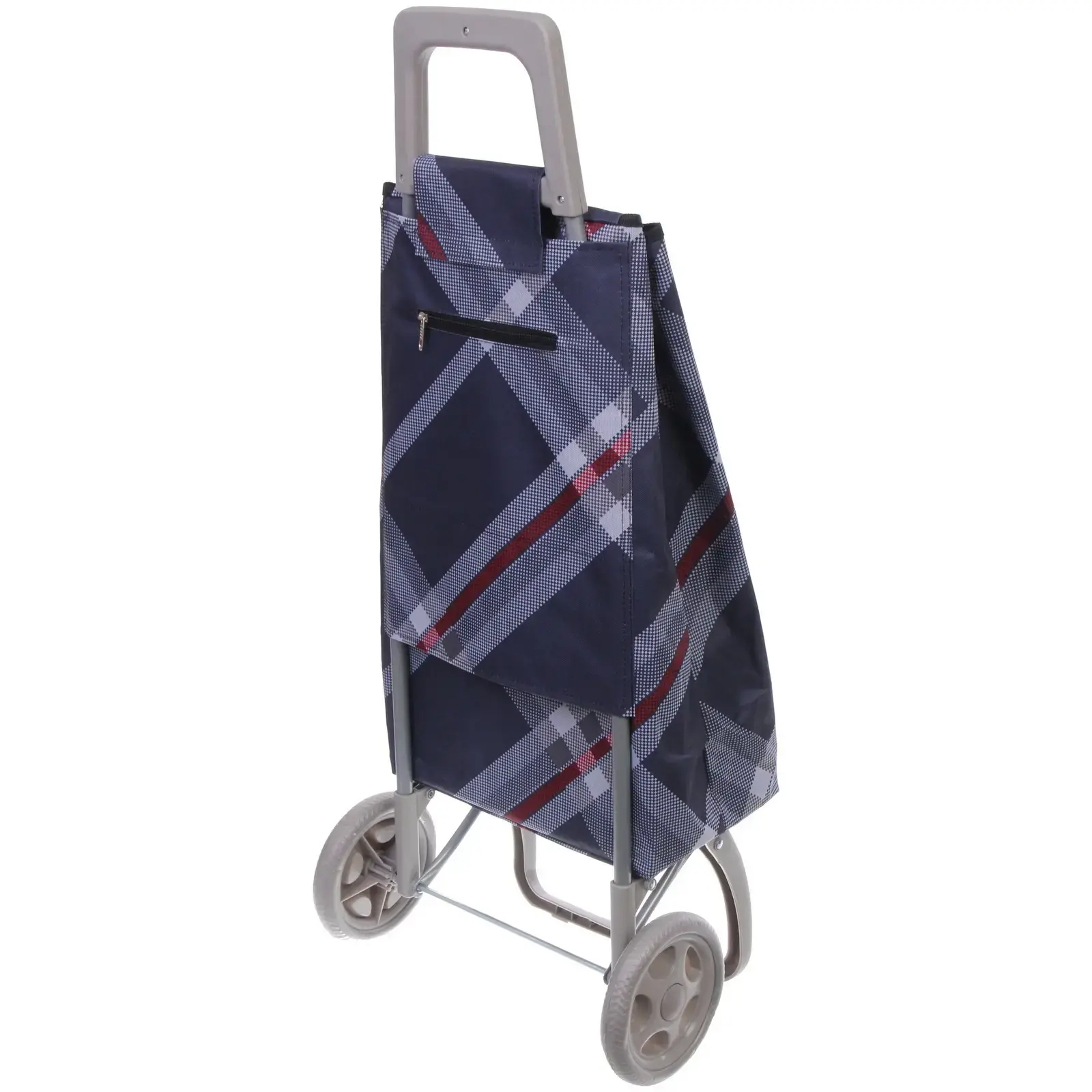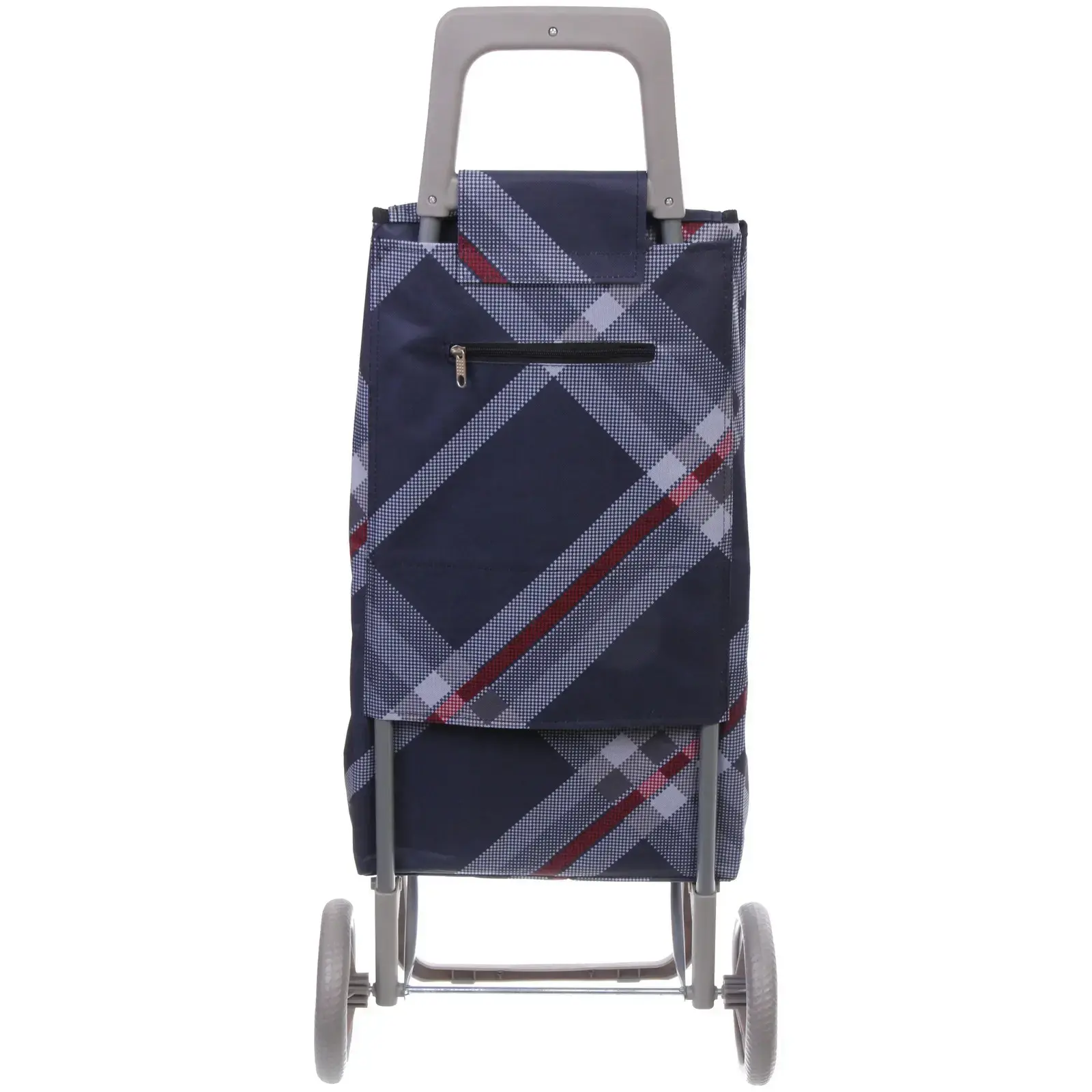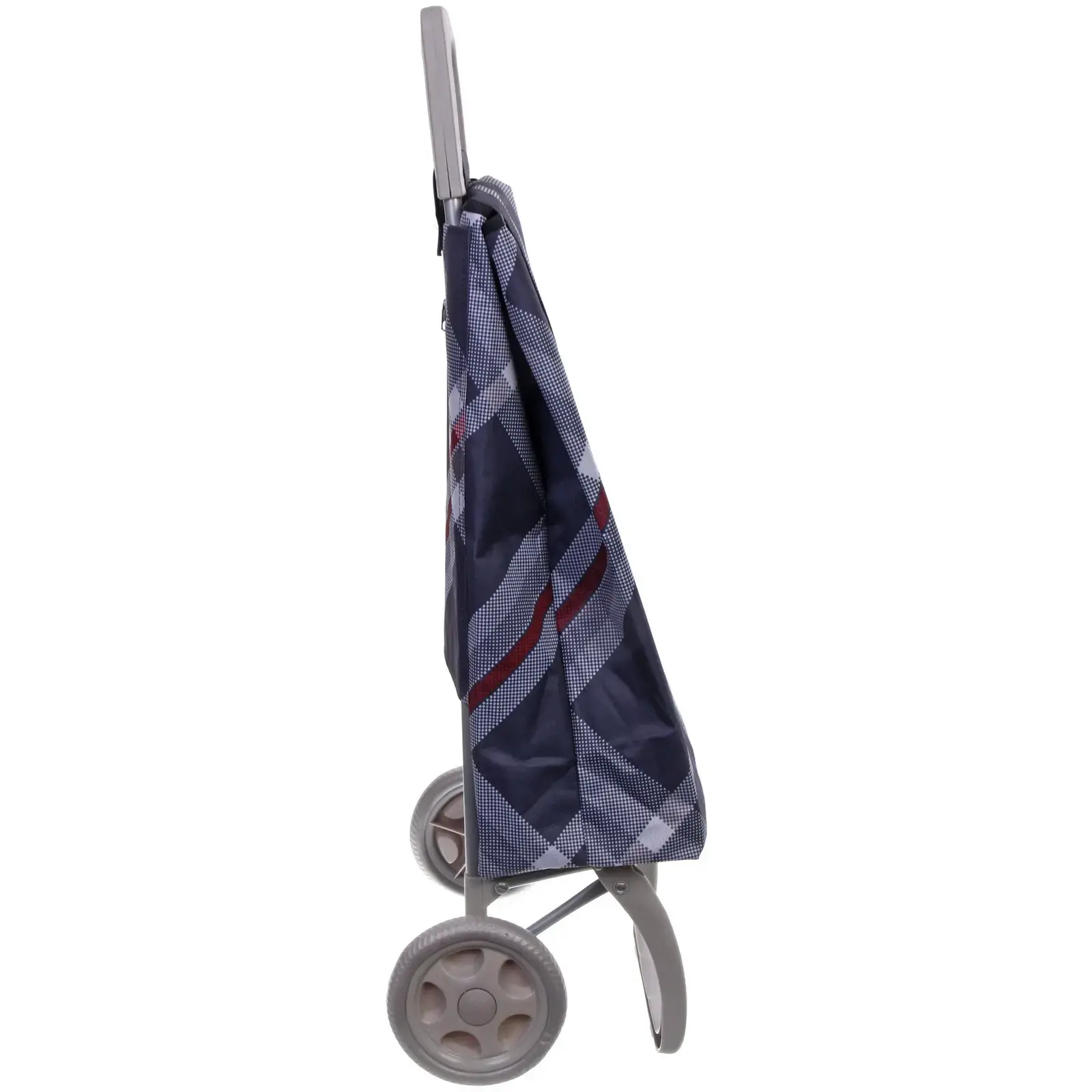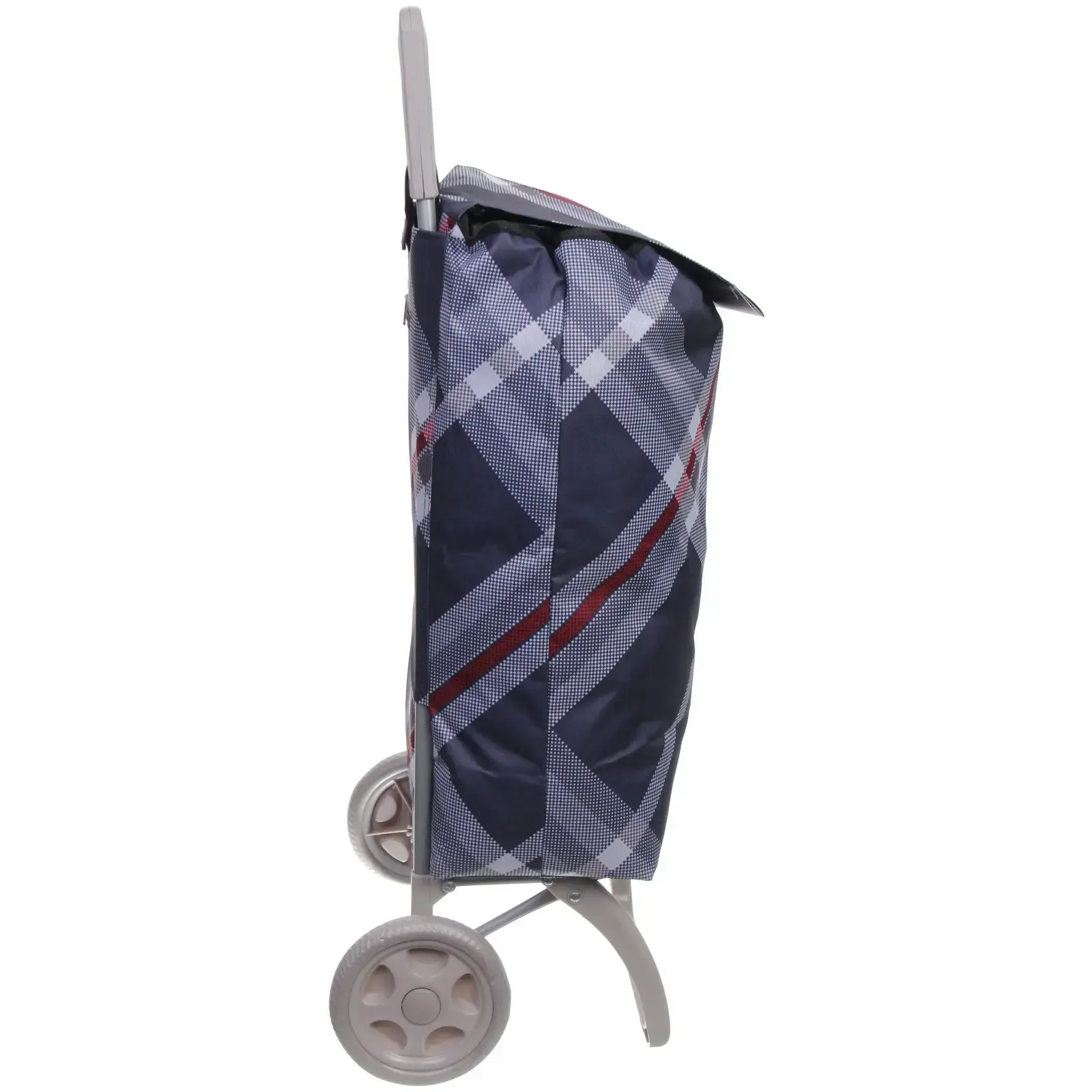 Тележка имеет стильный тёмно-синий цвет с многоцветным геометрическим узором, что делает её не только функциональной, но и привлекательной. Она станет вашим незаменимым помощником в повседневных делах, позволяя экономить время и силы. Не упустите возможность сделать свою жизнь проще с этой удобной тележкой!