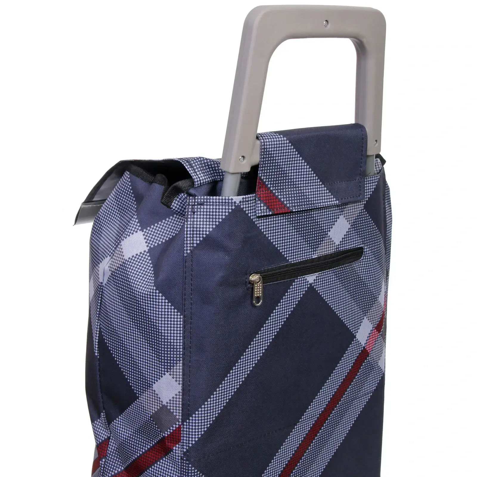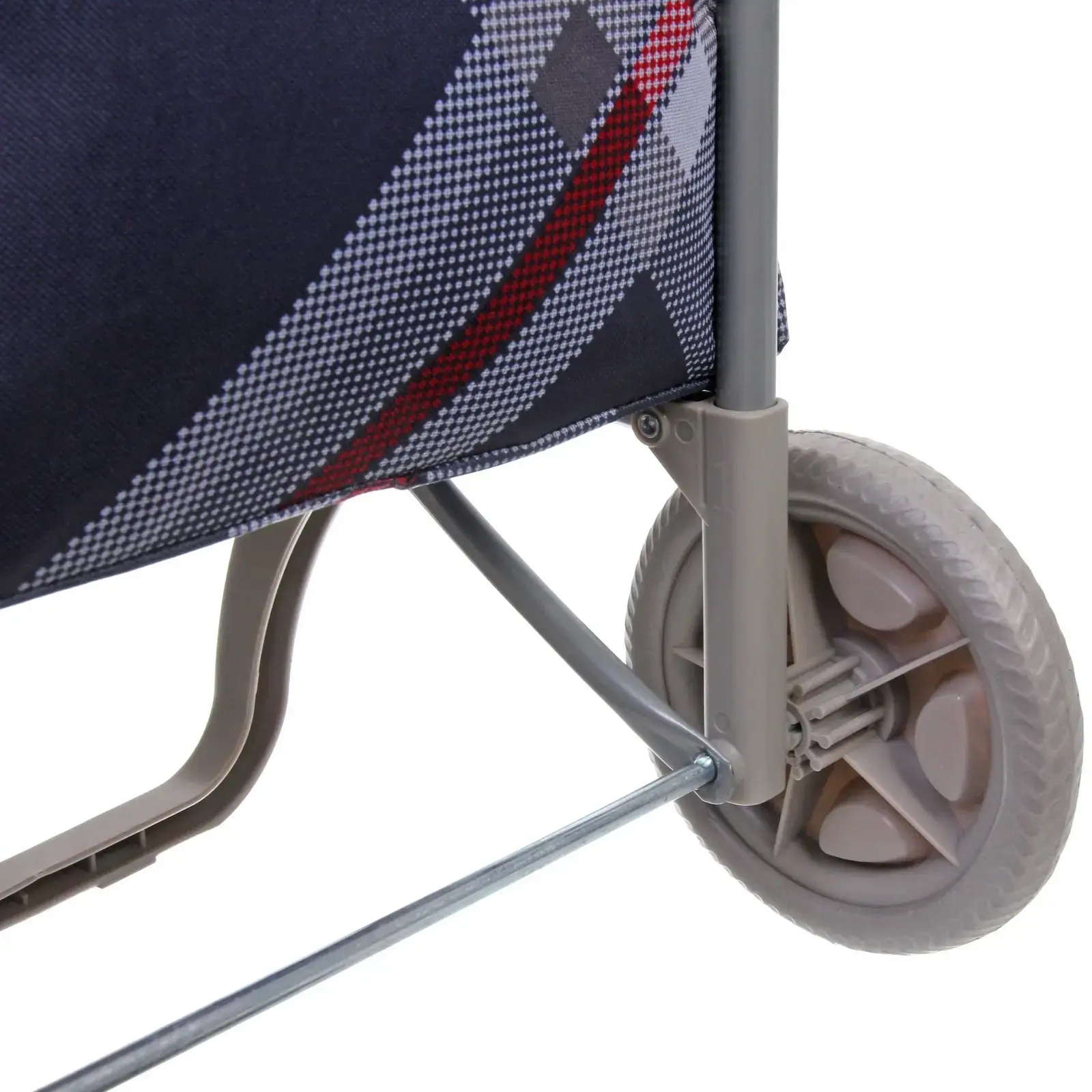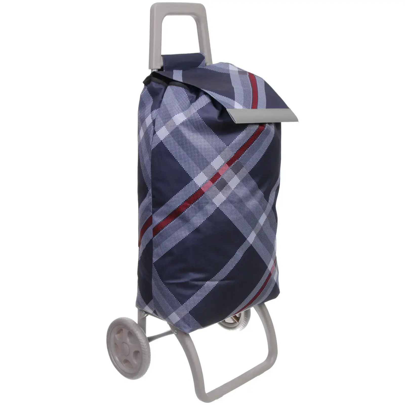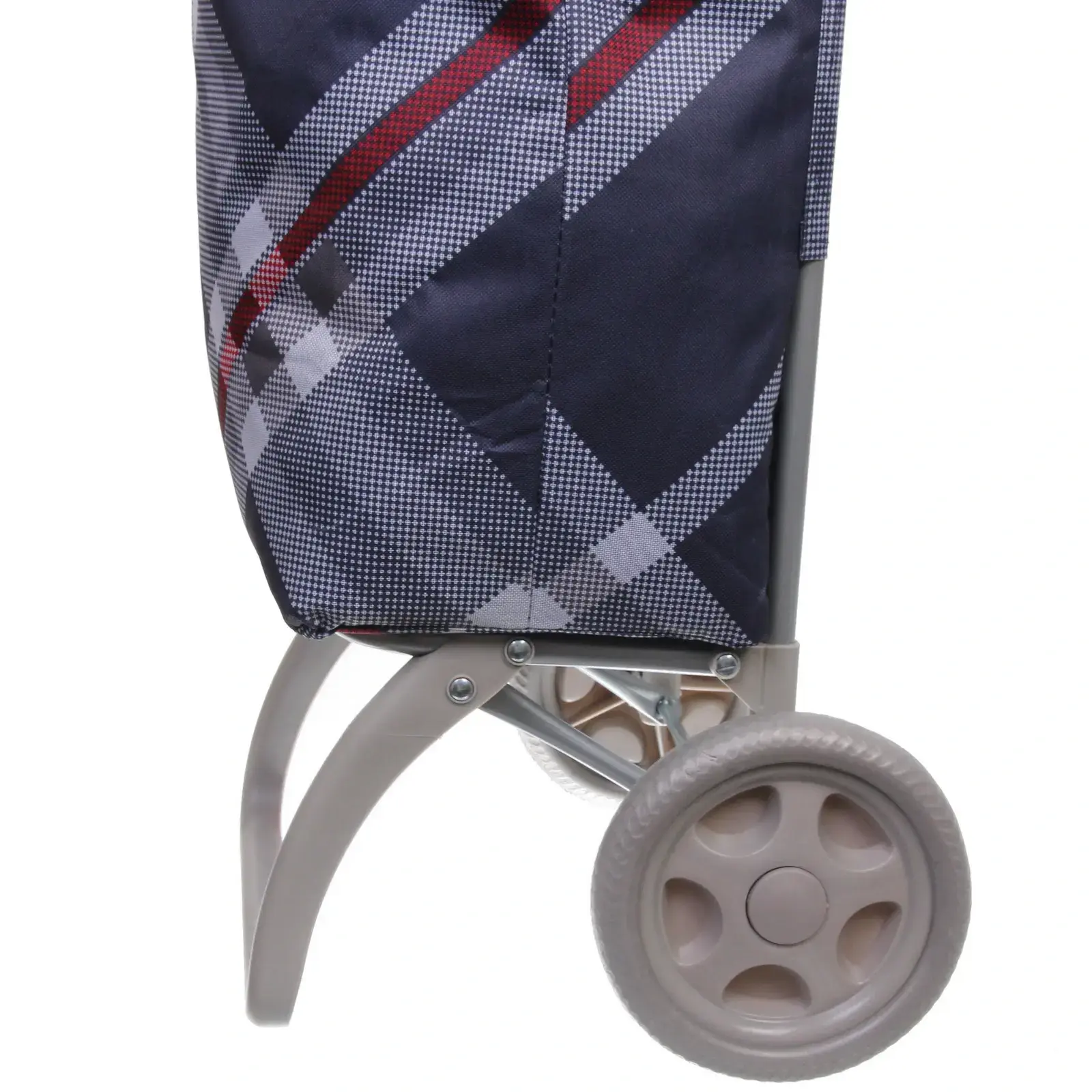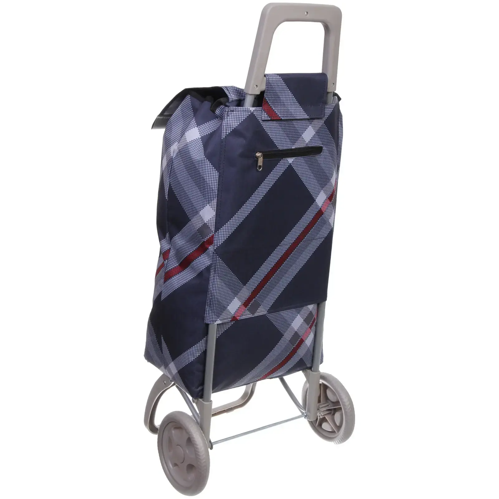 Тележка имеет стильный тёмно-синий цвет с многоцветным геометрическим узором, что делает её не только функциональной, но и привлекательной. Она станет вашим незаменимым помощником в повседневных делах, позволяя экономить время и силы. Не упустите возможность сделать свою жизнь проще с этой удобной тележкой!