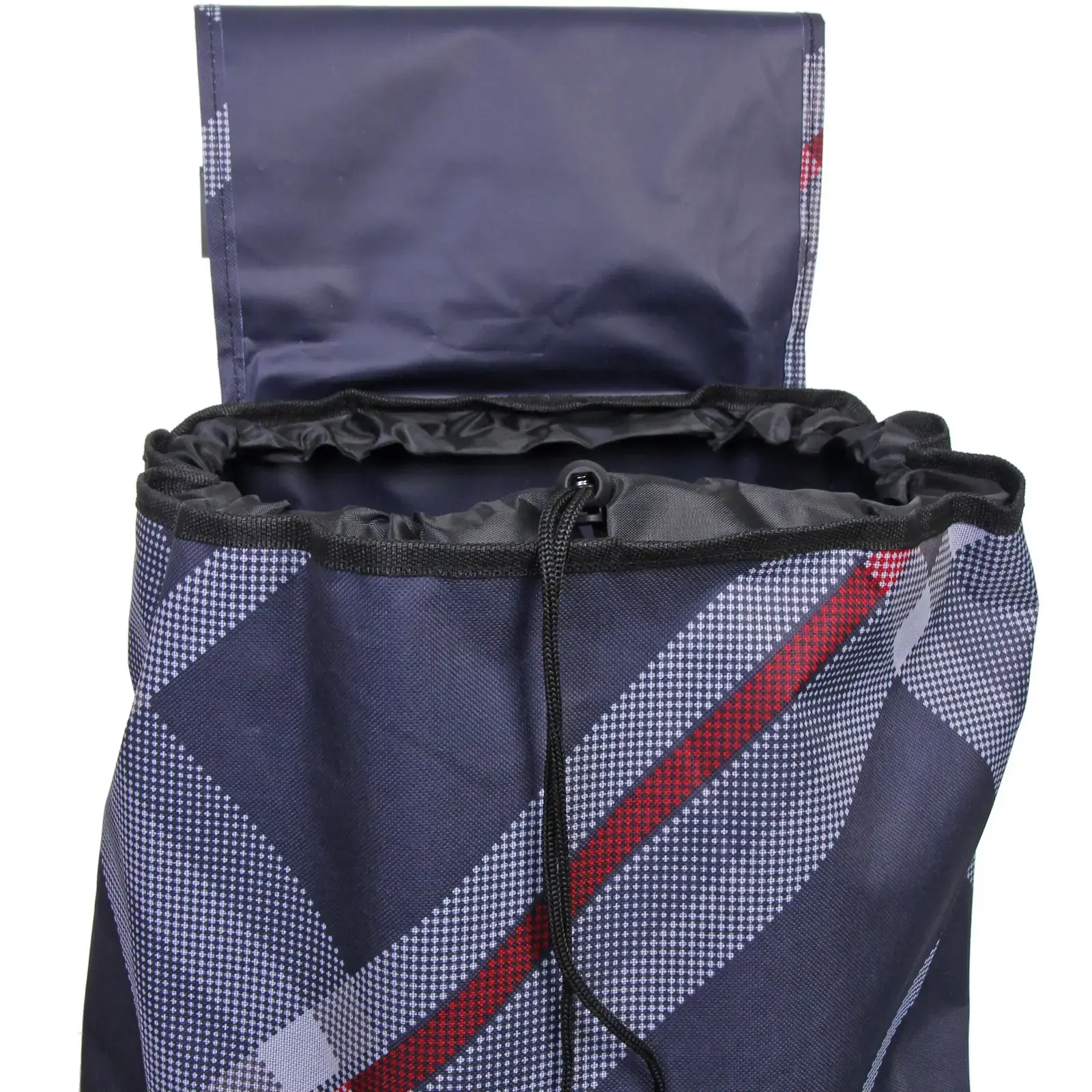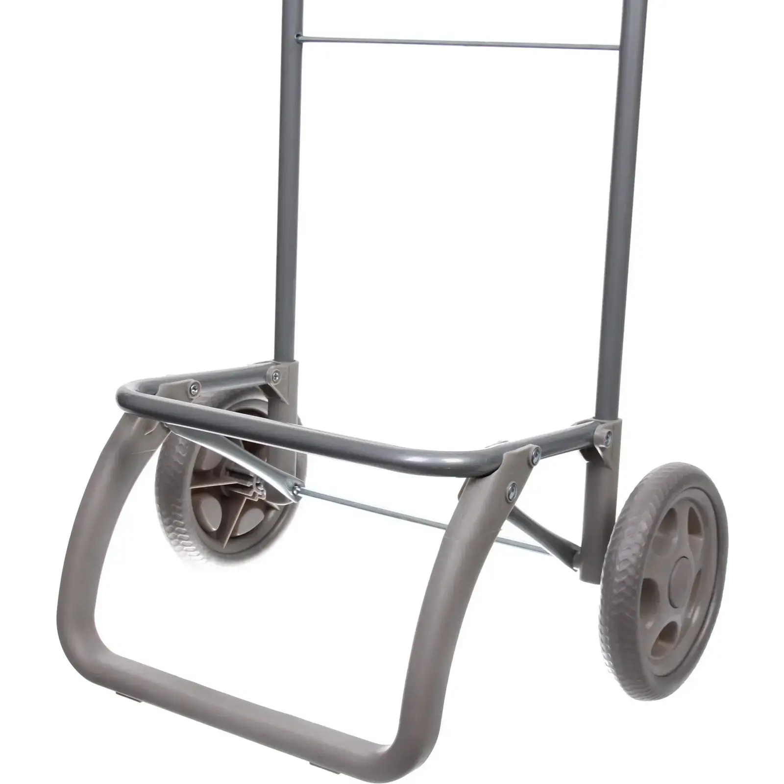 Сумка выполнена из водонепроницаемого текстиля, что защищает ваши вещи от влаги. Жёсткое дно обеспечивает устойчивость и надёжность, а удобная ручка позволяет легко управлять тележкой. Благодаря компактным размерам, тележка легко помещается в багажнике автомобиля или в шкафу, когда она не используется.